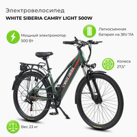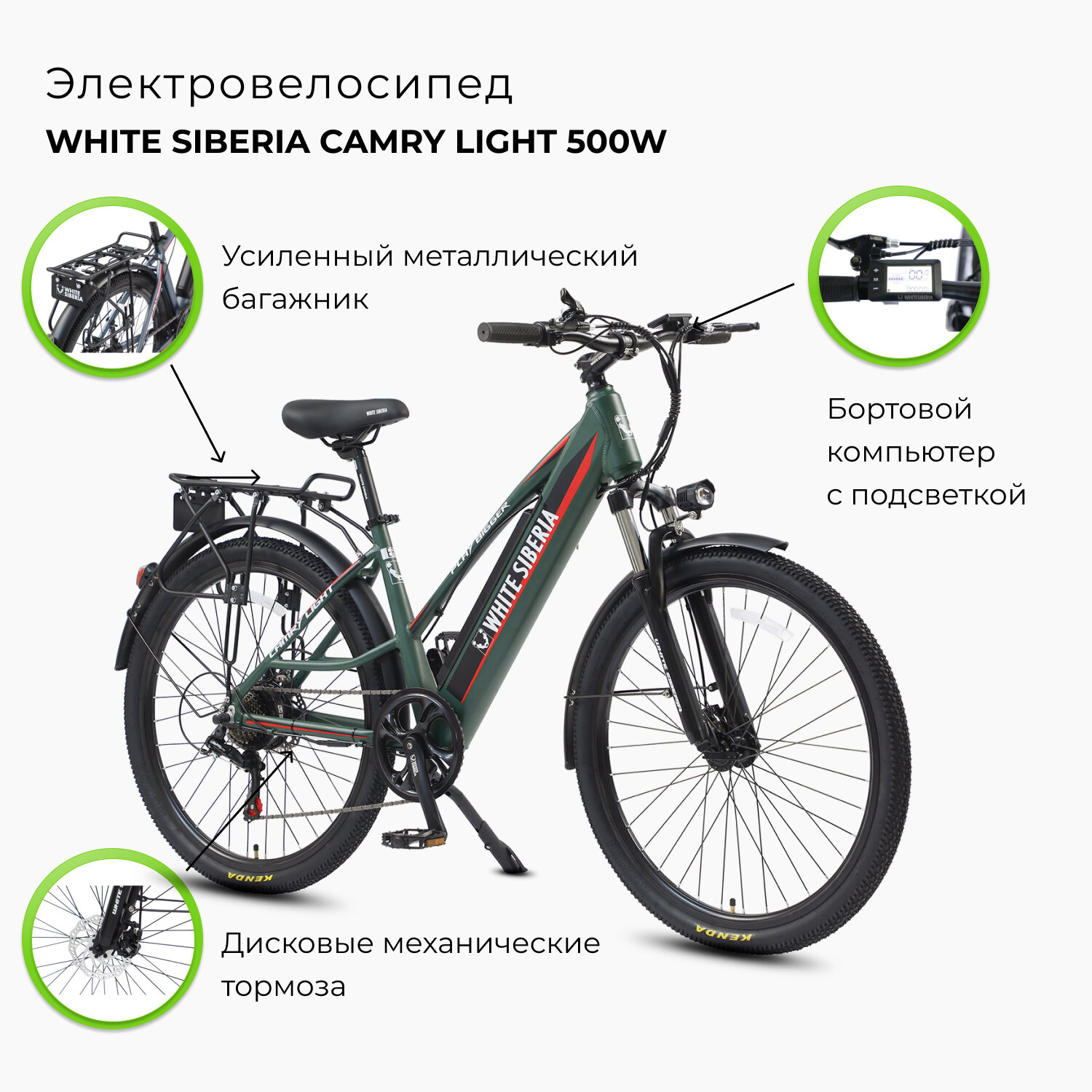 Купить Электровелосипед White Siberia Camry Light 500W Зеленый. 2025 года с доставкой по всей России. Электровелосипед White Siberia Camry Light 500W Зеленый. 2025 года: сравнение цен, характеристики, фото, актуальное наличие и цены.