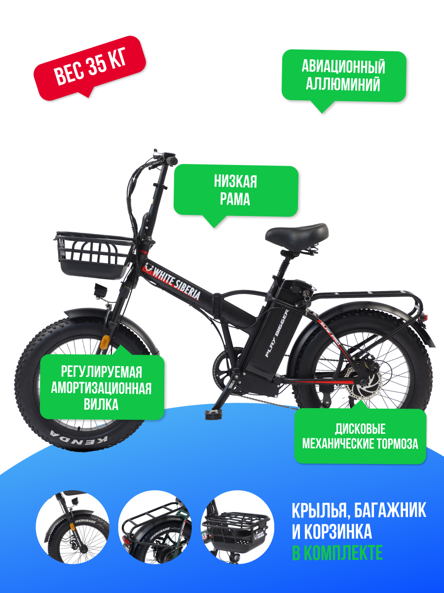Купить Электровелосипед WHITE SIBERIA SLAV PRO 1000W 48V/13A Black Sea (черный матовый) с доставкой по всей России.
