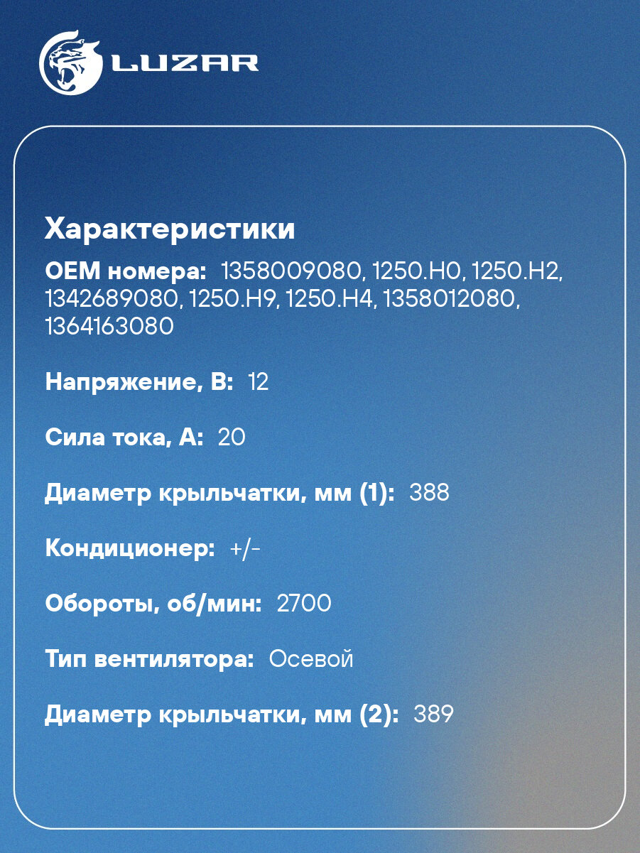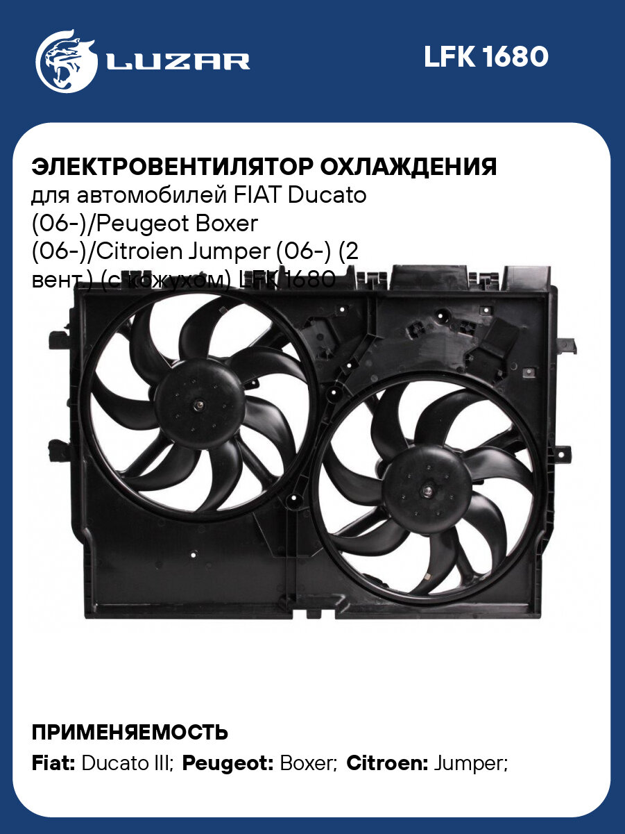 Электровентилятор охлаждения для автомобилей FIAT Ducato (06-)/Peugeot Boxer (06-)/Citroien Jumper (06-) (2 вент.) (с кожухом) LFK 1680 LUZAR: сравнение цен, характеристики, фото, актуальное наличие и цены.
