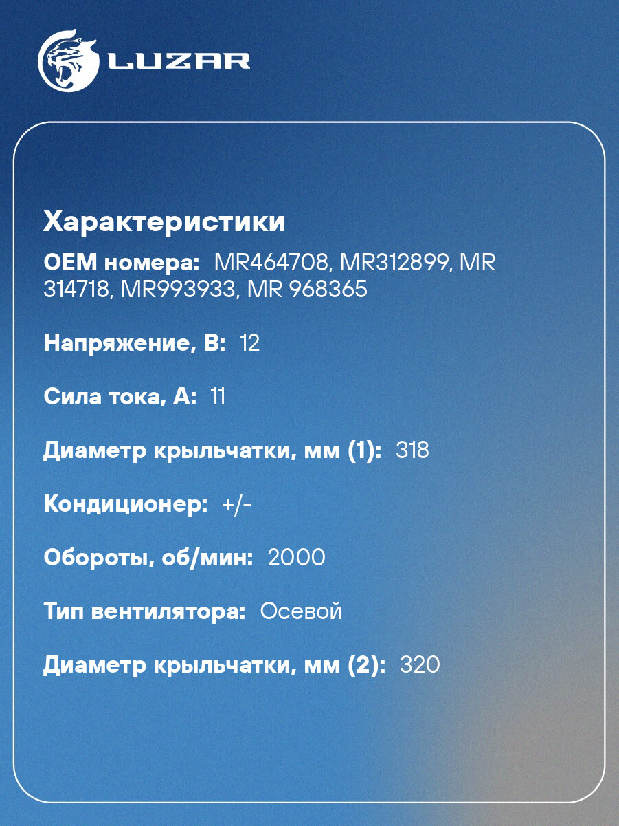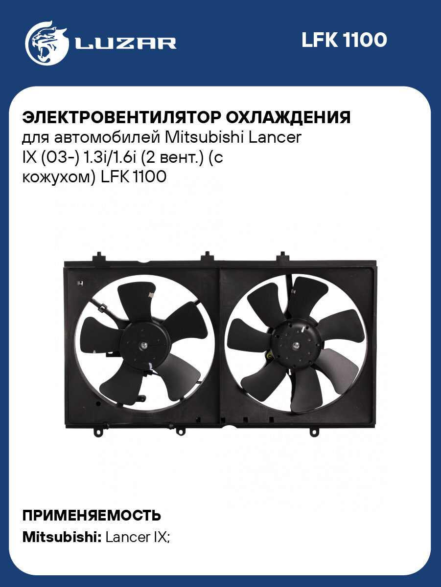 Электровентилятор охлаждения для автомобилей Mitsubishi Lancer IX (03-) 1.3i/1.6i (2 вент.) (с кожухом) LFK 1100 LUZAR: сравнение цен, характеристики, фото, актуальное наличие и цены.