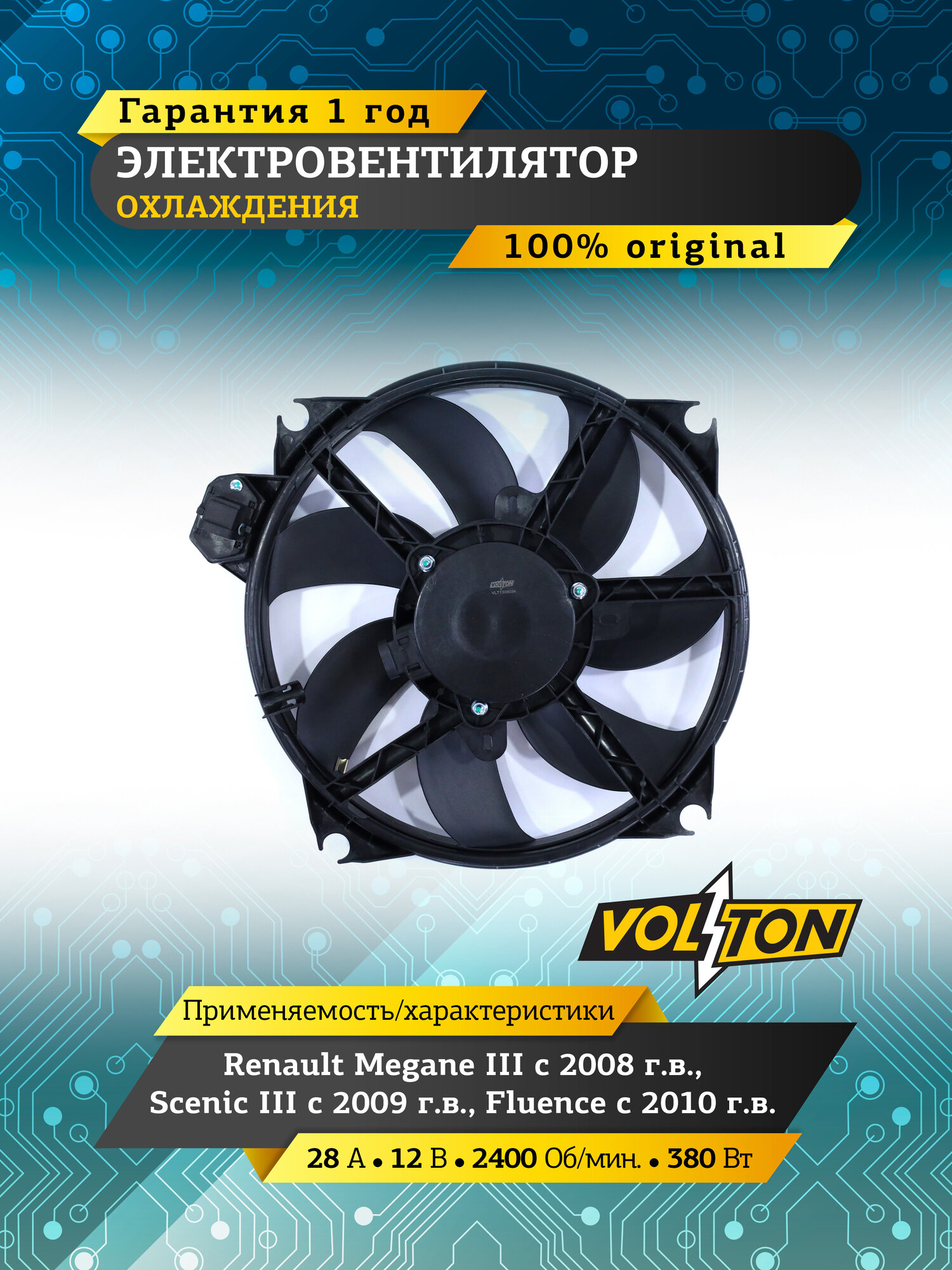 Электровентилятор охлаждения VOLTON, для RENAULT MEGANE III (2009>), FLUENCE (2010>): сравнение цен, характеристики, фото, актуальное наличие и цены.