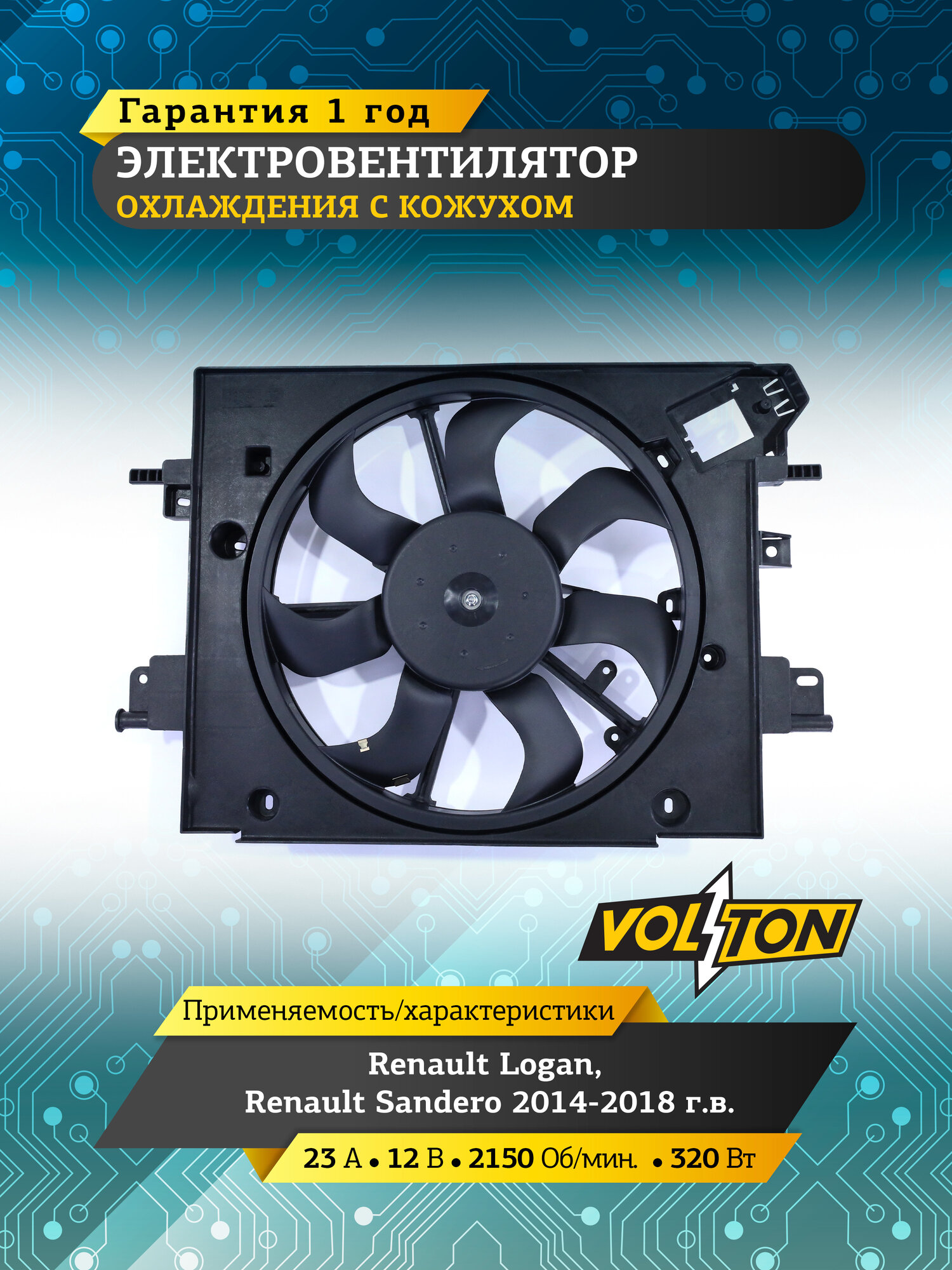 Электровентилятор охлаждения VOLTON для RENAULT Logan / RENAULT Sandero (2014-18): сравнение цен, характеристики, фото, актуальное наличие и цены.