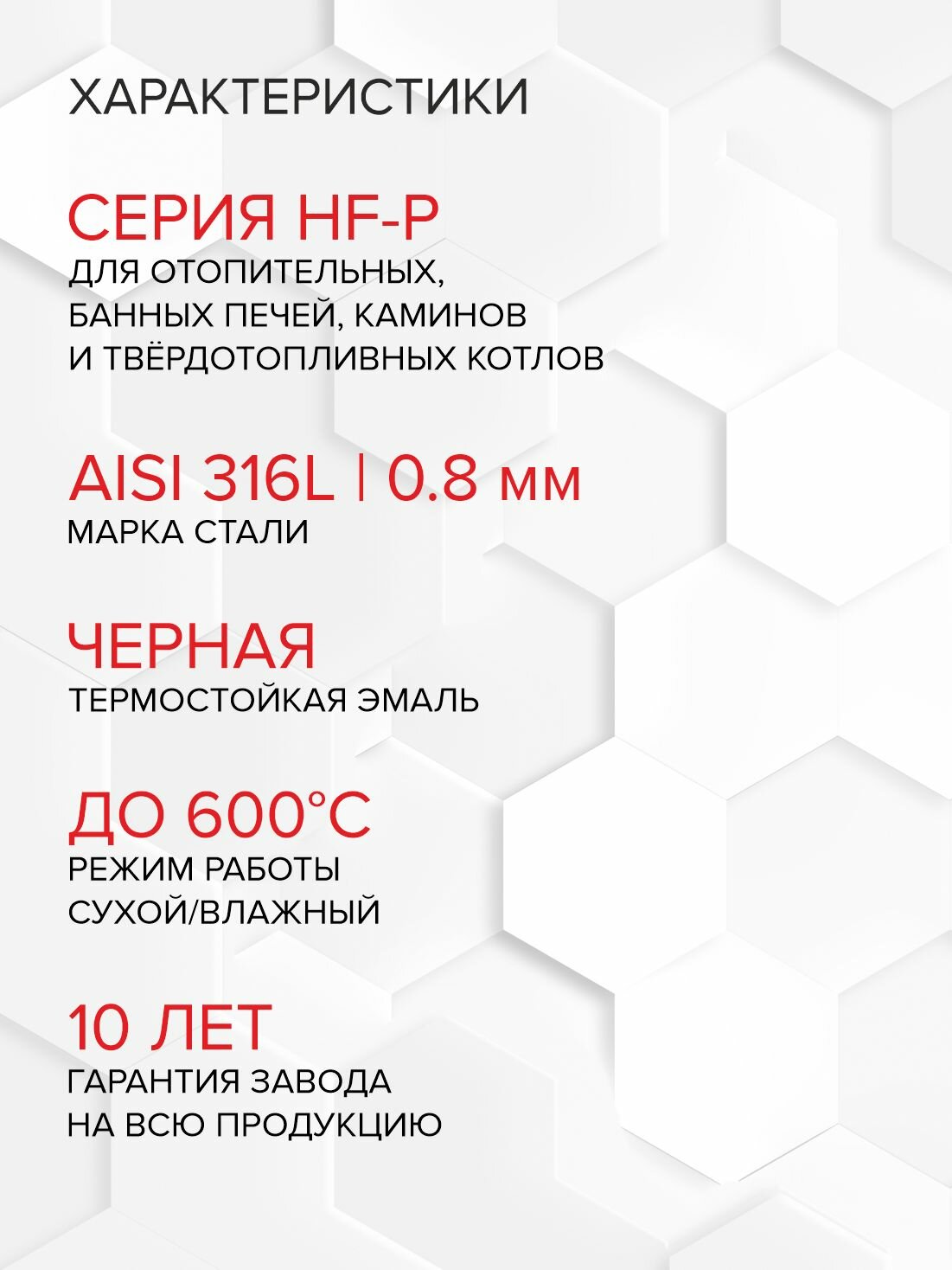 Элемент предназначен для изменения направления дымового канала и обхода препятствий во время монтажа. Изготовлен из коррозионностойкой нержавеющей стали AISI 316L, окрашен матовой черной термостойкой эмалью, что исключает появление следов побежалости. Толщина стенки 0,8 мм. Холодная формовка раструбного соединения с идеальной геометрией и газоплотностью. Лазерная сварка встык обеспечивает тонкий и прочный шов, увеличивая в разы срок эксплуатации. Рабочая температура до 600°С.