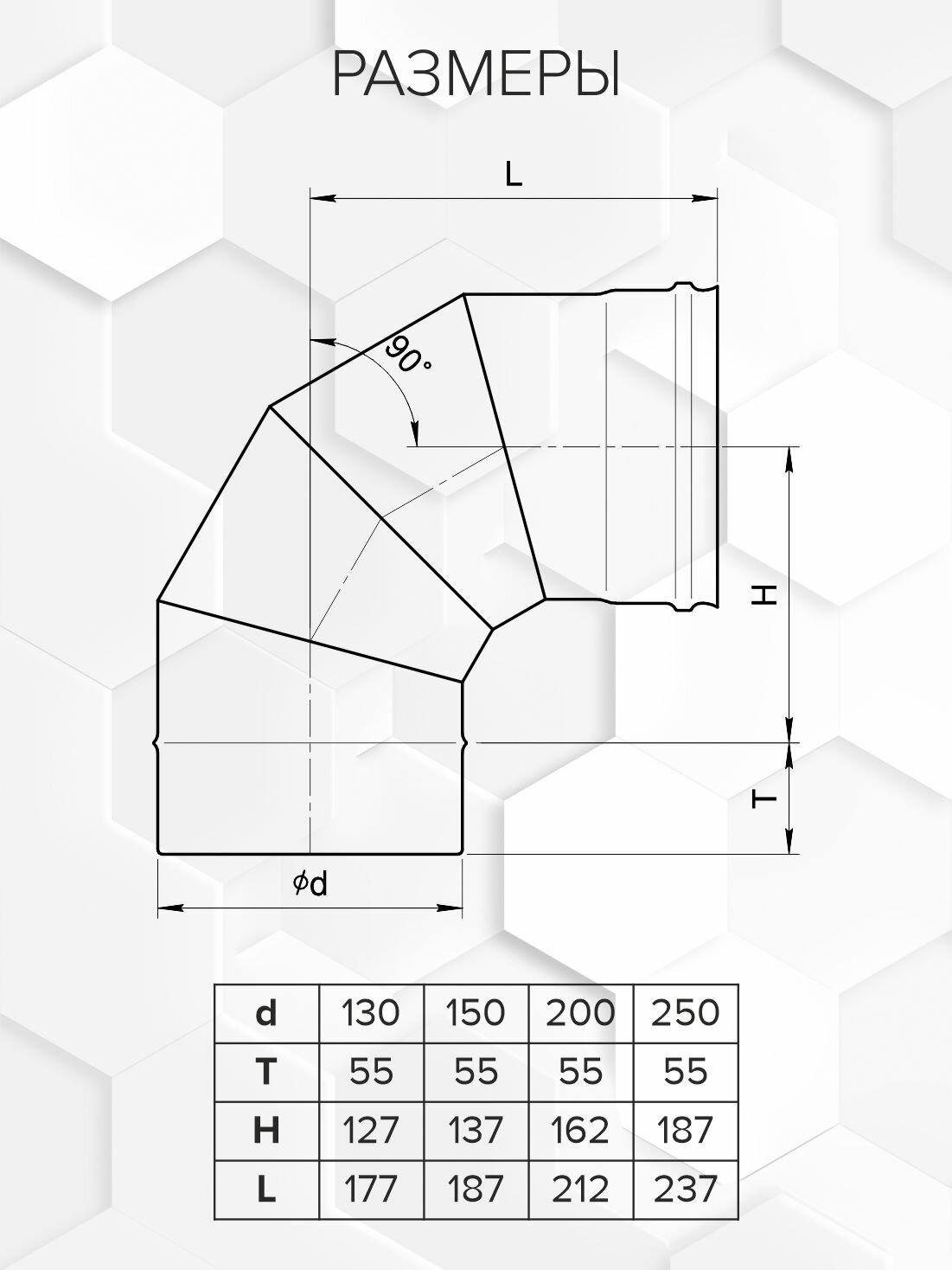 Элемент предназначен для изменения направления дымового канала и обхода препятствий во время монтажа. Изготовлен из коррозионностойкой нержавеющей стали AISI 316L. Толщина стенки 0,5 мм. Холодная формовка раструбного соединения с идеальной геометрией и газоплотностью. Лазерная сварка встык обеспечивает тонкий и прочный шов, увеличивая в разы срок эксплуатации. Рабочая температура до 450°С.