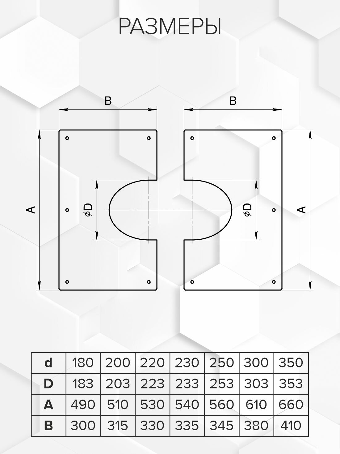 Элемент используется в качестве декоративного и пожарозащитного элемента. Для поверхностей имеющих уклон от вертикали от 35° до 45°. Изготавливлен из аустенитной стали AISI304, толщина стенки 0,5 мм. Окрашен в черный матовый цвет термостойкой эмалью