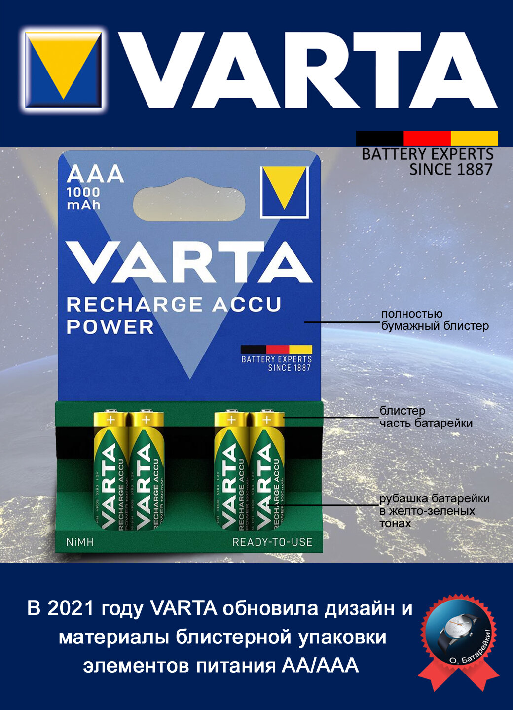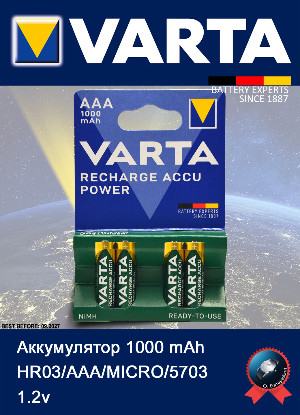 Элемент питания, аккумулятор Ni-MH Varta AAA (HR03/5703/MICRO) 1000mAh, 1.2v, никель-металлогидридный, BL4: сравнение цен, характеристики, фото, актуальное наличие и цены.