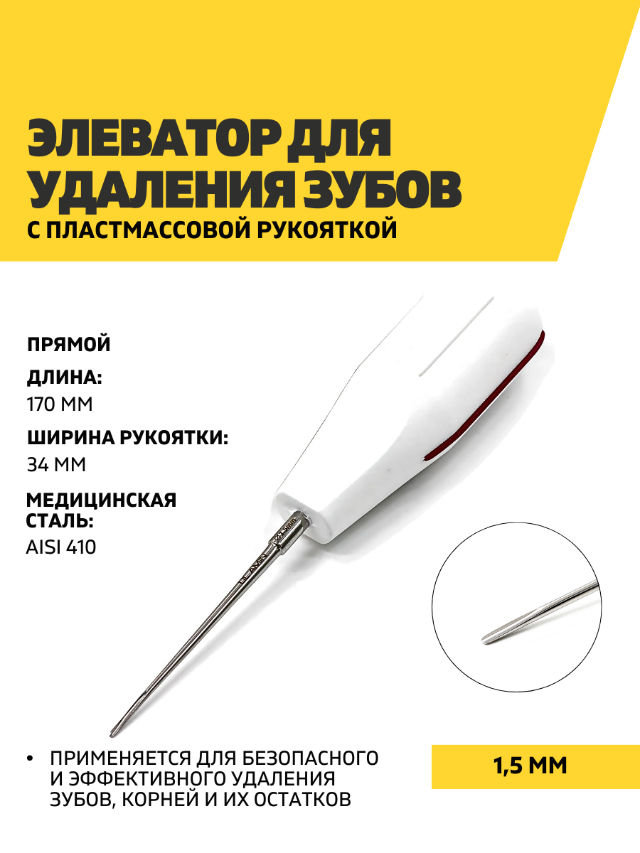 Купить Элеватор для удаления зубов с пластмассовой рукояткой, 170 мм, 1,5 мм с доставкой по всей России. Элеватор для удаления зубов с пластмассовой рукояткой, 170 мм, 1,5 мм: сравнение цен, характеристики, фото, актуальное наличие и цены.