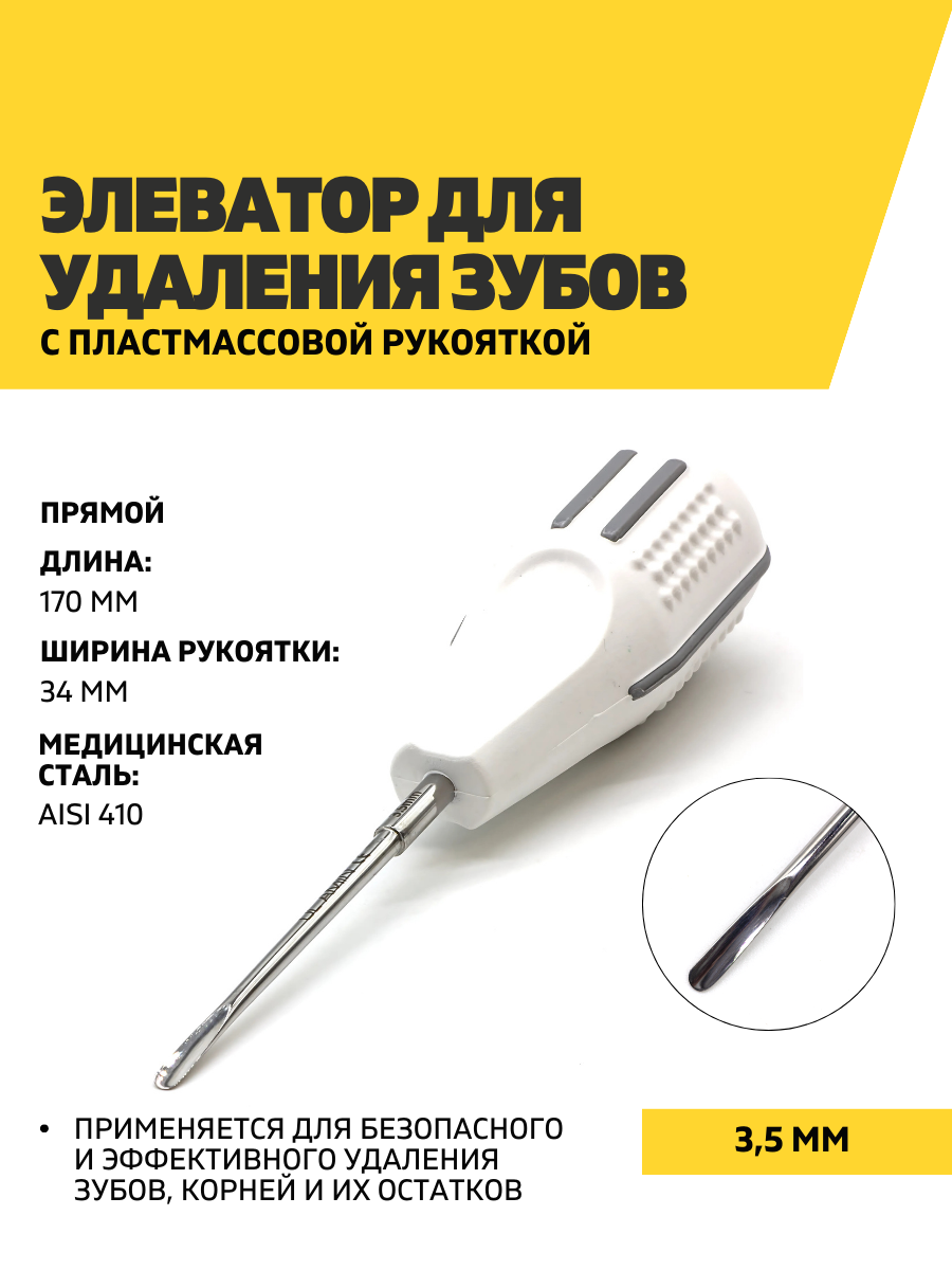 Купить Элеватор для удаления зубов с пластмассовой рукояткой, 170 мм, 3,5мм с доставкой по всей России. Элеватор для удаления зубов с пластмассовой рукояткой, 170 мм, 3,5мм: сравнение цен, характеристики, фото, актуальное наличие и цены.