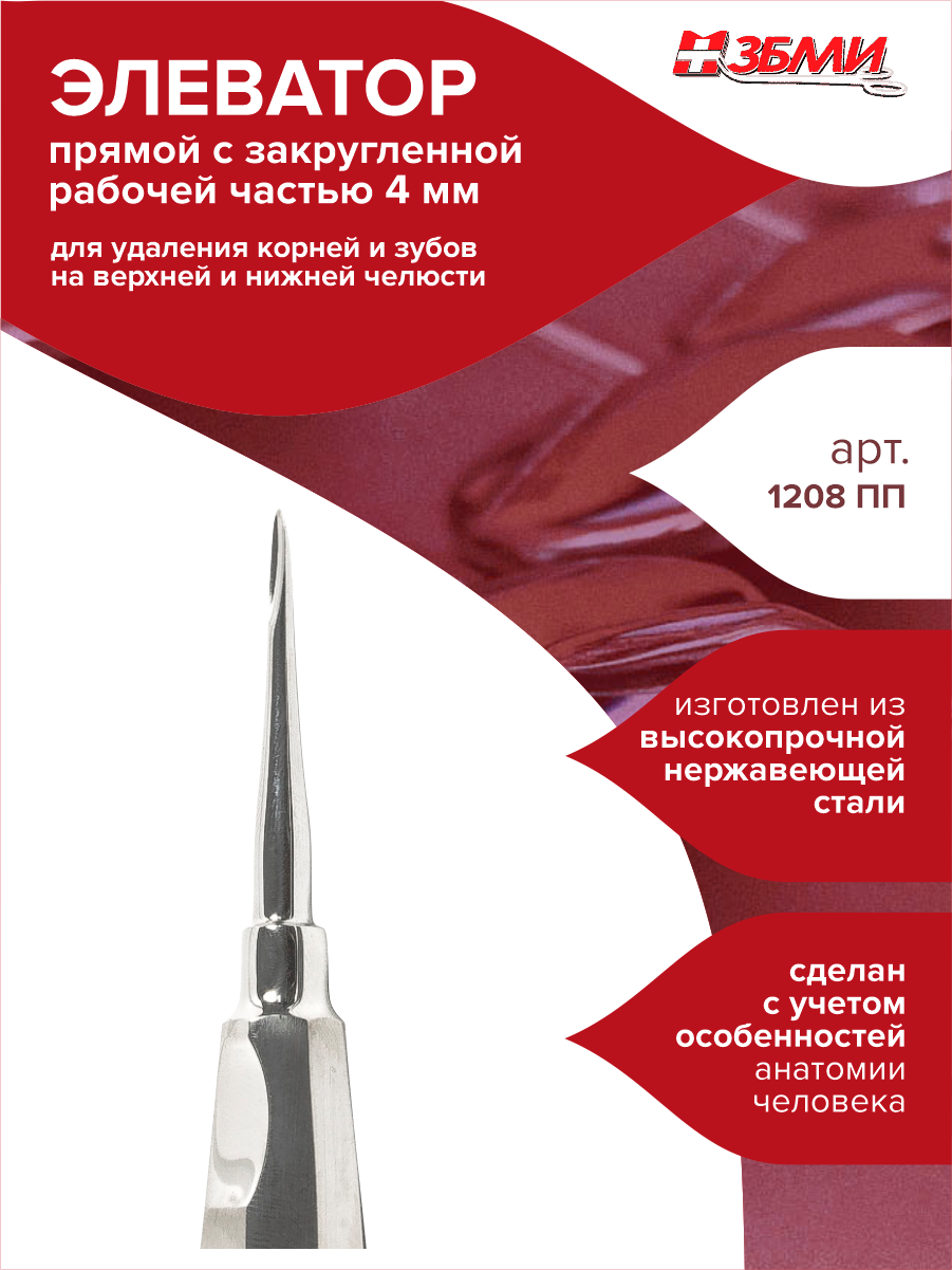 Элеватор прямой с заостренной рабочей частью 4 мм арт. 1208 ПП