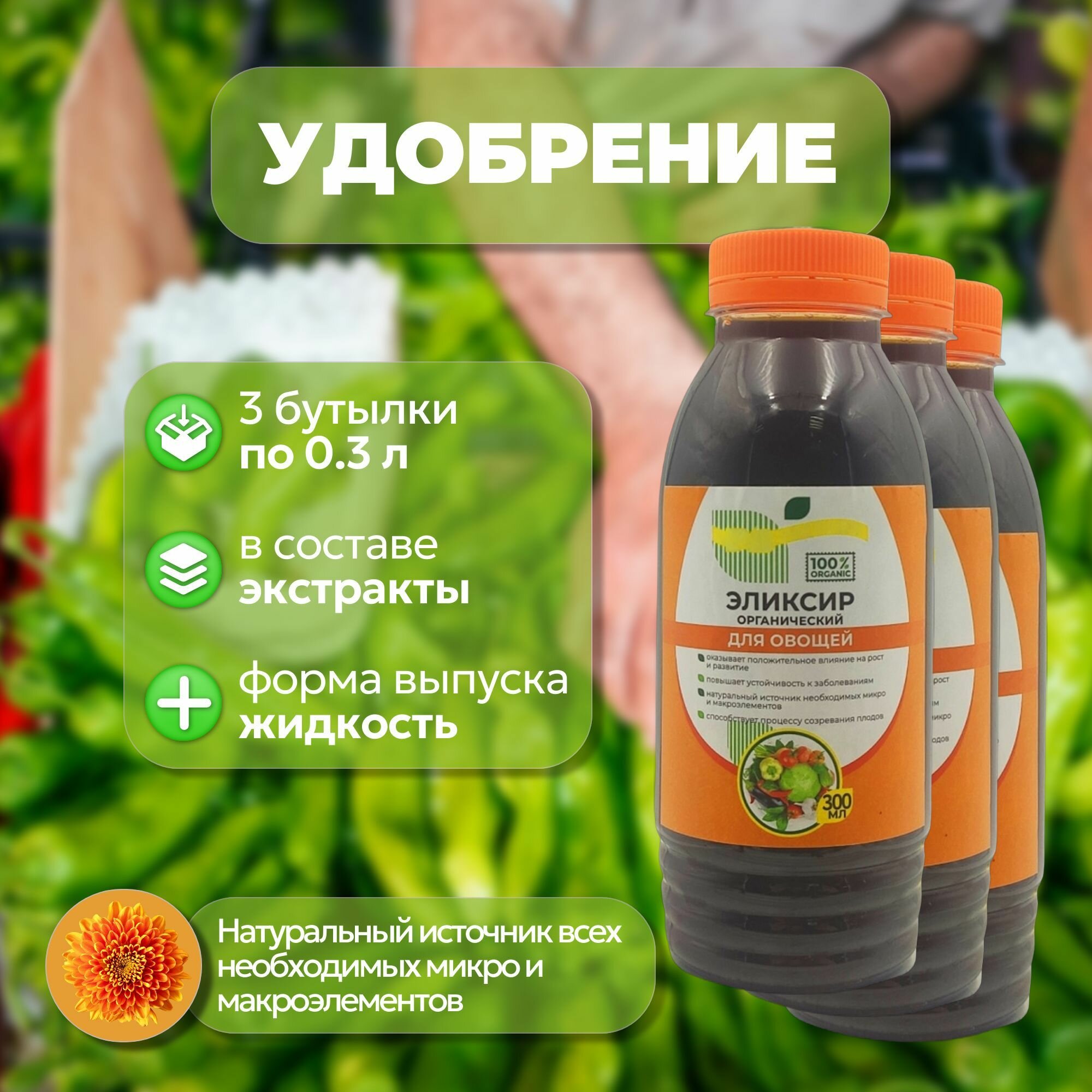 Эликсир органический для овощей, 3 бутылки по 0,3 л. Комплексное удобрение с большим содержанием микроэлементов, ферментов и витаминов в доступной форме. Увеличивает урожайность: сравнение цен, характеристики, фото, актуальное наличие и цены.