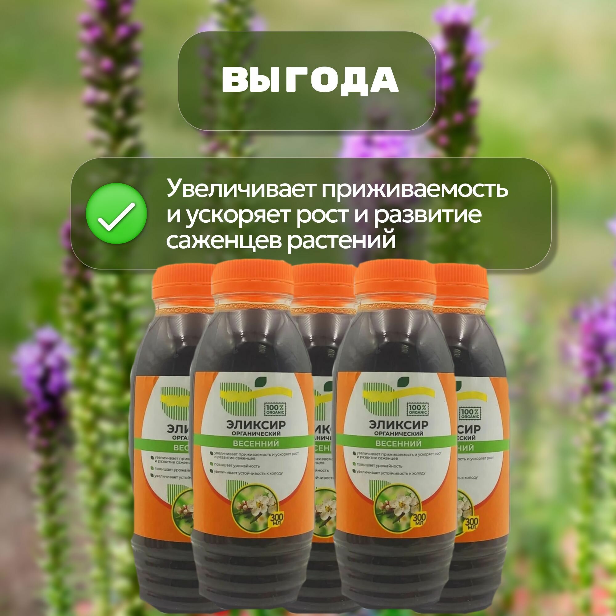 Эликсир органический весенний, 5 бутылок по 0,3 л. Эффективное комплексное органическое удобрение, разработанное для подкормки овощных, плодово-ягодных, цветочно-декоративных культур в весенний период
