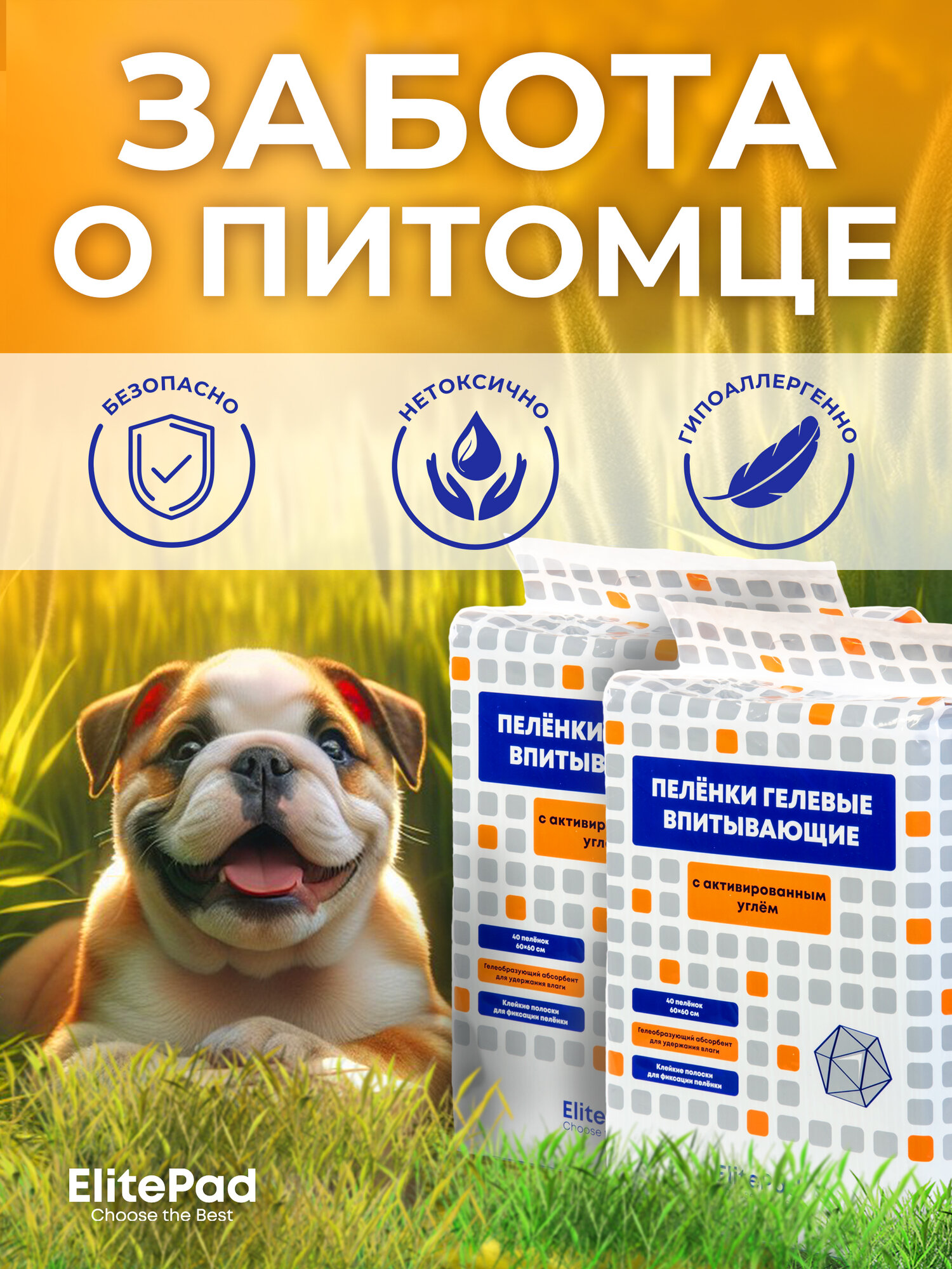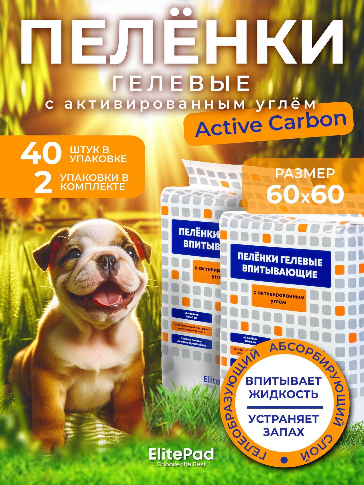 ELITEPAD Пелёнки одноразовые, гелевые с углём «Active Carbon», 60х60см, 40шт/уп КОМПЛЕКТх2шт: сравнение цен, характеристики, фото, актуальное наличие и цены.