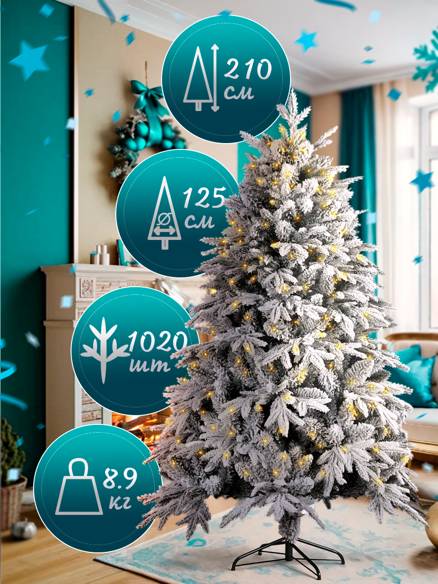Елка искусственная 210 см, с напылением, белый флок, и подсветкой: сравнение цен, характеристики, фото, актуальное наличие и цены.