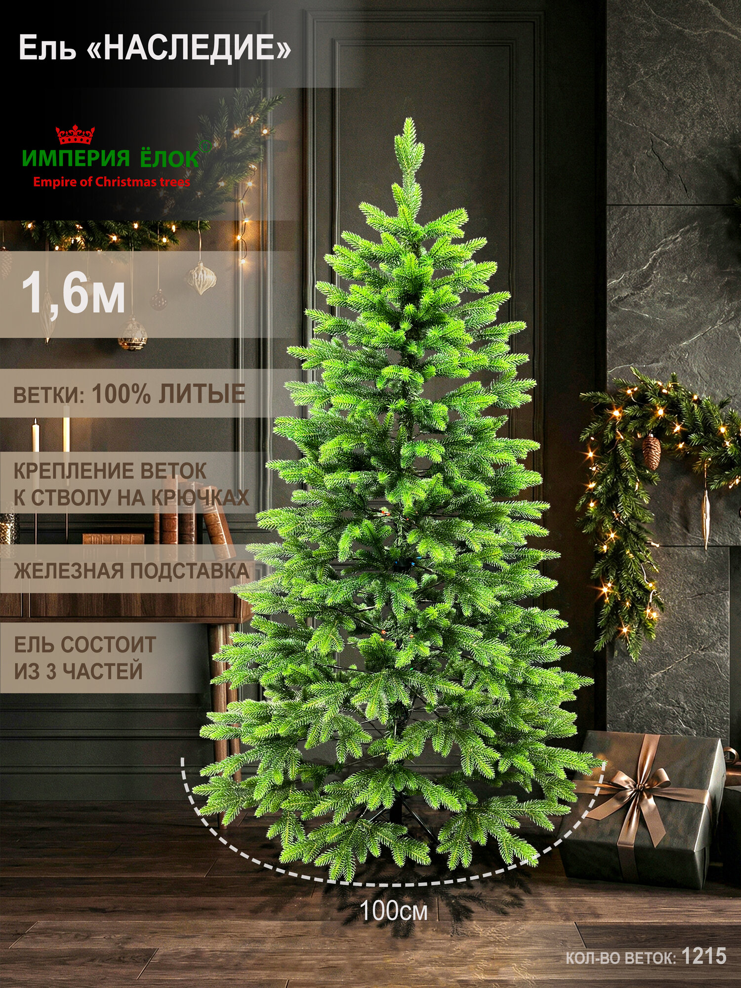 Елка искусственная новогодняя литая высокая 180 см, Империя Ёлок