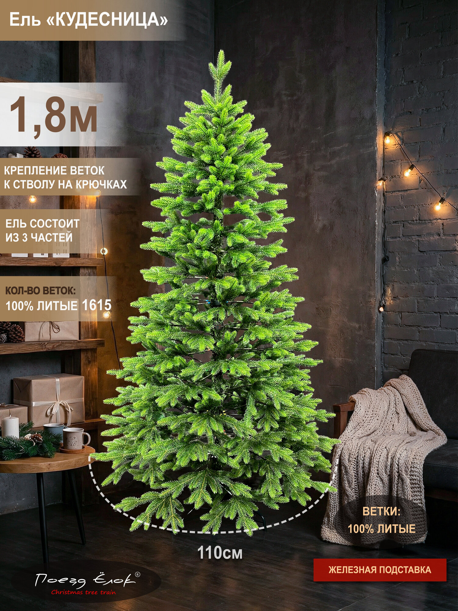 Елка искусственная литая новогодняя высокая 180 см, Поезд Ёлок