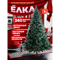 Елка искусственная на шарнирах 240 см, украшенная шишками и ягодами, ПВХ