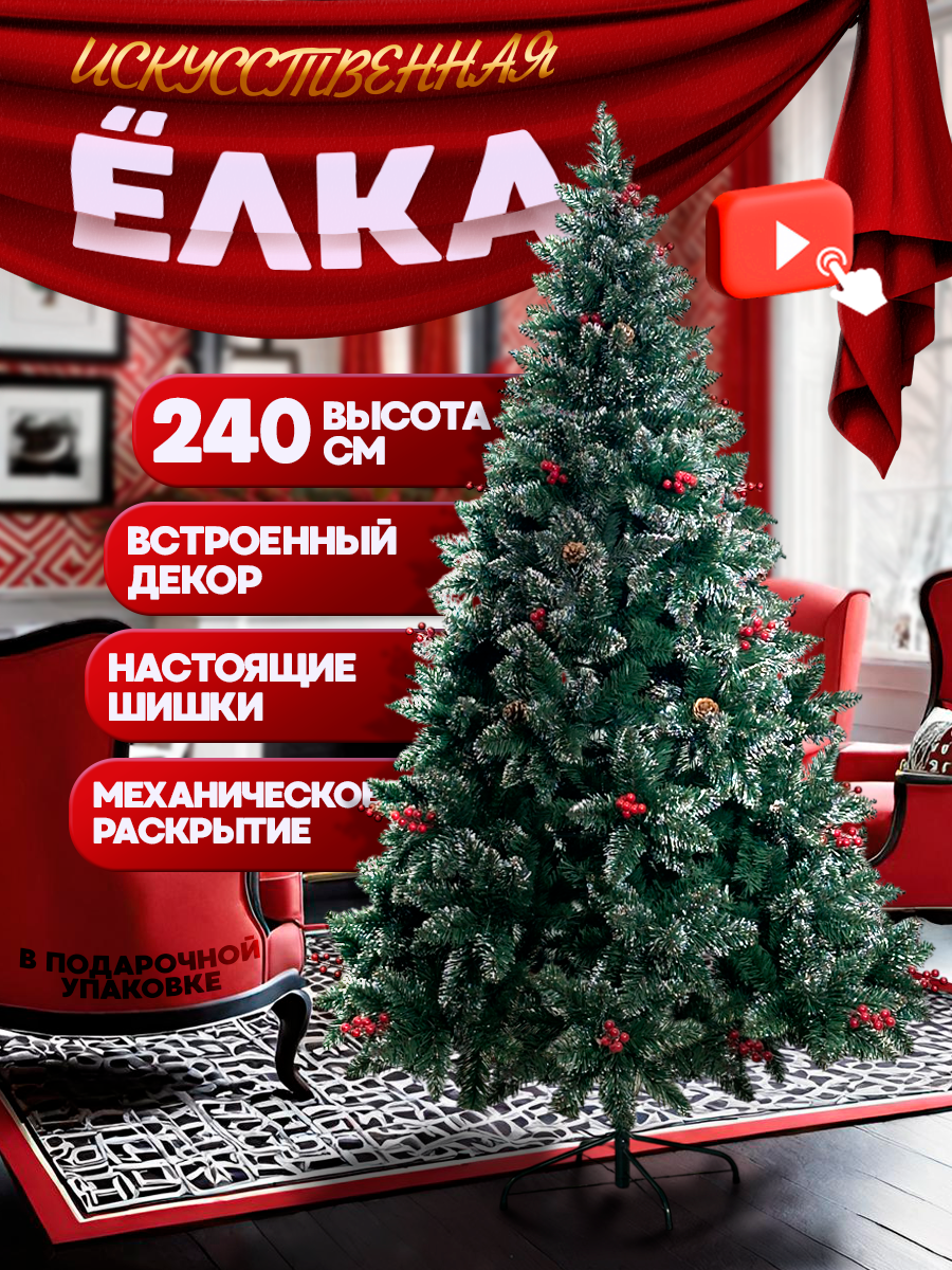 Елка искусственная на шарнирах 240 см, украшенная шишками и ягодами, ПВХ: сравнение цен, характеристики, фото, актуальное наличие и цены.