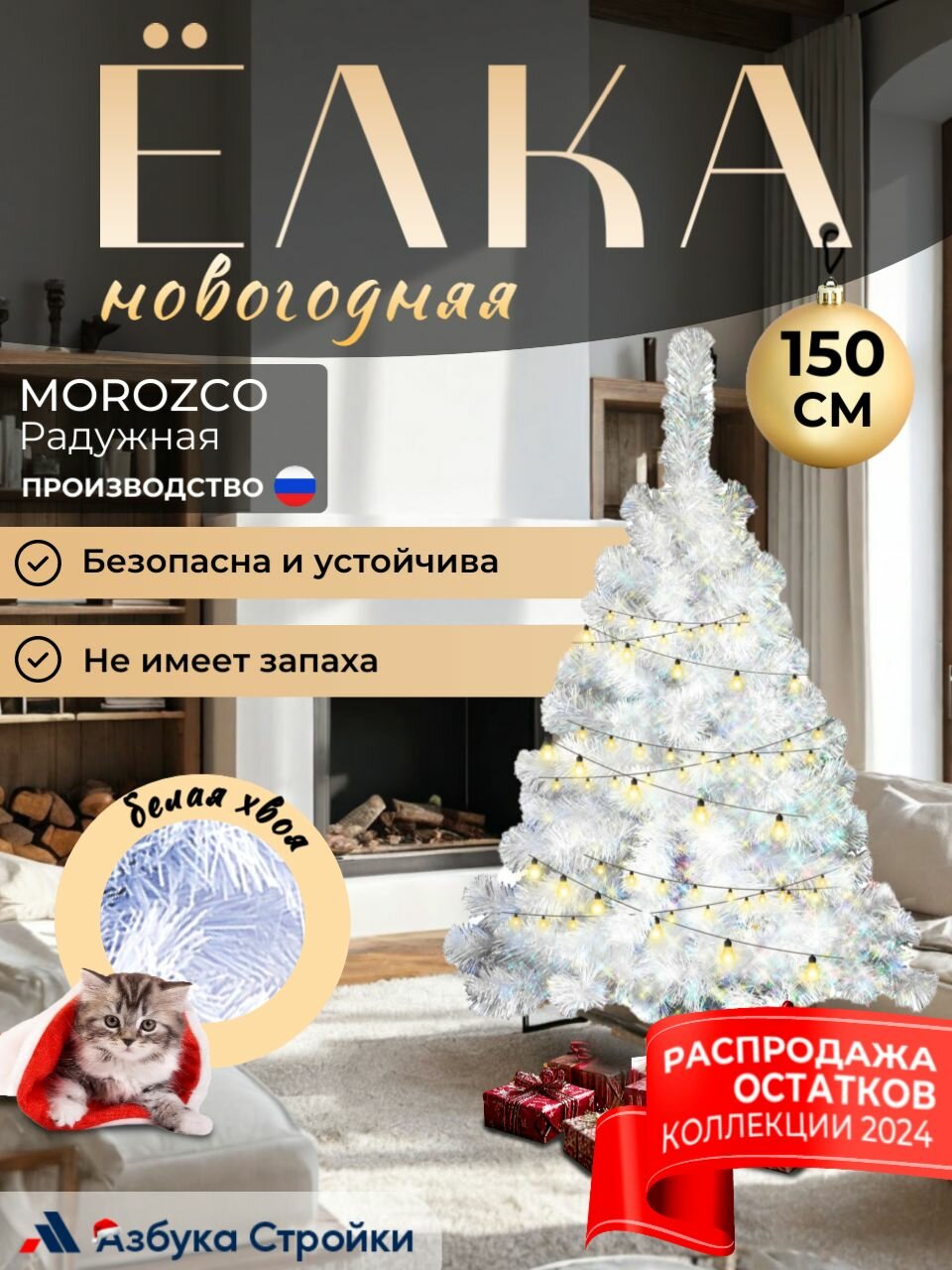 Купить Елка искусственная новогодняя 150 см MOROZCO Радужная блестящая, 100% ПВХ, белая с доставкой по всей России.
