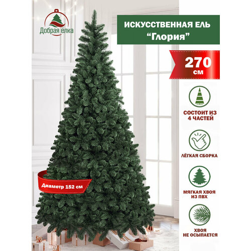 Купить Елка искусственная новогодняя «Глория» 270 см, Добрая елка, из ПВХ, зеленая. с доставкой по всей России.