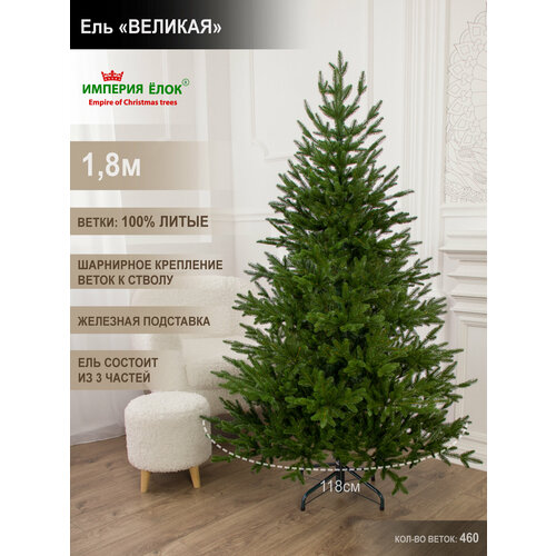 Представляем вам стильную искусственную новогоднюю елку из серии «Великая» высотой 180 см (высота с учётом подставки). Такая елка станет украшением вашего дома во время новогодних праздников и создаст особую атмосферу зимней сказки. Тип новогодней елочки: 100% литая. Высота елки вместе с подставкой: 1.80 м. Ветки: 460. Диаметр нижнего яруса 118 см. Крепление веток- шарнирное. Подставка: металлическая устойчивая. Упаковка: плотная коробка