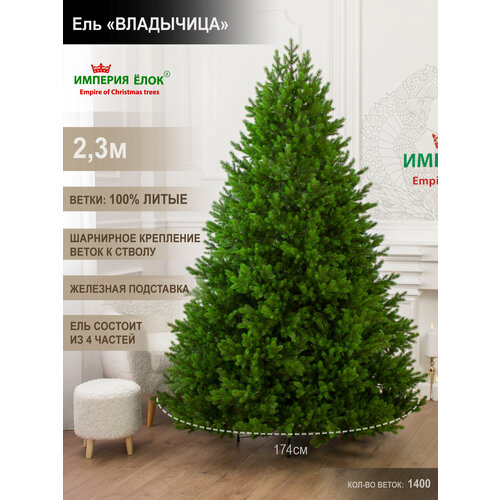 Елка искусственная новогодняя литая «Арфа» высотой 230 см - это настоящий новогодний подарок для семейного праздника! Елка литая 100%, сделана из мягкого силиконового материала, благодаря чему не колется и смотрится совсем как настоящая ель, вплоть до самых маленьких хвойных иголочек. Наша ель состоит из веточек литой хвои. Хвойные ветки не осыпаются, силиконовые иголки мягкие и приятные на ощупь. Такое решение делает ее более пушистой, а насыщенный натуральный зеленый цвет придает свежесть и естественность нашей ёлке. Новогодняя елка имеет 18 ярусов, диаметр нижнего яруса 146 см. Ель искусственная литая «Арфа» состоит из 1.554 веточек. Новогодняя елка очень проста в сборке благодаря шарнирному креплению веток. Чтобы собрать нашу искусственную елку, достаточно соединить 4 части елки между собой, и ветки сами займут горизонтальное положение. Вам остается только распределить веточки ели и придать им естественный вид. Гирлянда на елку, яркие елочные шары и новогодние украшения будут прекрасным дополнением к небольшой новогодней елке. Литую напольную елку высотой 1,2 м можно поставить в любой комнате. Это отличный вариант, если вам нужна высокая искусственная елка для помещения. Искусственная елка на Новый год наполняет каждый дом сказочным теплом и новогодним волшебством. В комплектацию к рождественской елке входит устойчивая металлическая подставка, которая выдержит вес новогодней елки с большим количеством украшений, новогодних шаров и гирлянд. Сама искусственная елка вместе с подставкой упакована в коробку. Вы можете задекорировать низ искусственной ели коробками с подарками, корзиной или декоративными новогодними украшениями. Новогодняя искусственная ель прекрасно подойдет для украшения и декорации фотостудии, лофта, квартиры, комнаты, дома и офиса. Невысокая напольная елка подходит для детей и детского праздника, потому что не имеет запаха и абсолютно гипоаллергенна. Ель искусственная изготовлена под строгим контролем качества. Новогодние искусственные елки от Империи Ёлок славятся качественным материалом и длительным сроком службы. В производстве елок данного типа для ветвей и ствола используется натуральная краска на водной основе без химических составляющих. При распаковке и сборке елки возможно небольшое осыпание красочного слоя. Но это происходит один раз и далее вы весь сезон наслаждаетесь вашей красавицей без вреда для здоровья. В ассортименте Империи Ёлок есть большой выбор литых елок и елей из ПВХ. Вы всегда можете купить литые искусственные елки 60см, 70см, 120 см, 150 см, 180 см, 220 см и другой высоты, высокие елки и небольшие новогодние елочки. У нас также есть искусственные елки из ПВХ, а также елки с новогодним декором, с цветами и елочными украшениями. В ассортименте Империи Ёлок есть все для Нового года: большой выбор литых елок и елей из ПВХ, широкий ассортимент электрогирлянд для улицы и украшения дома.