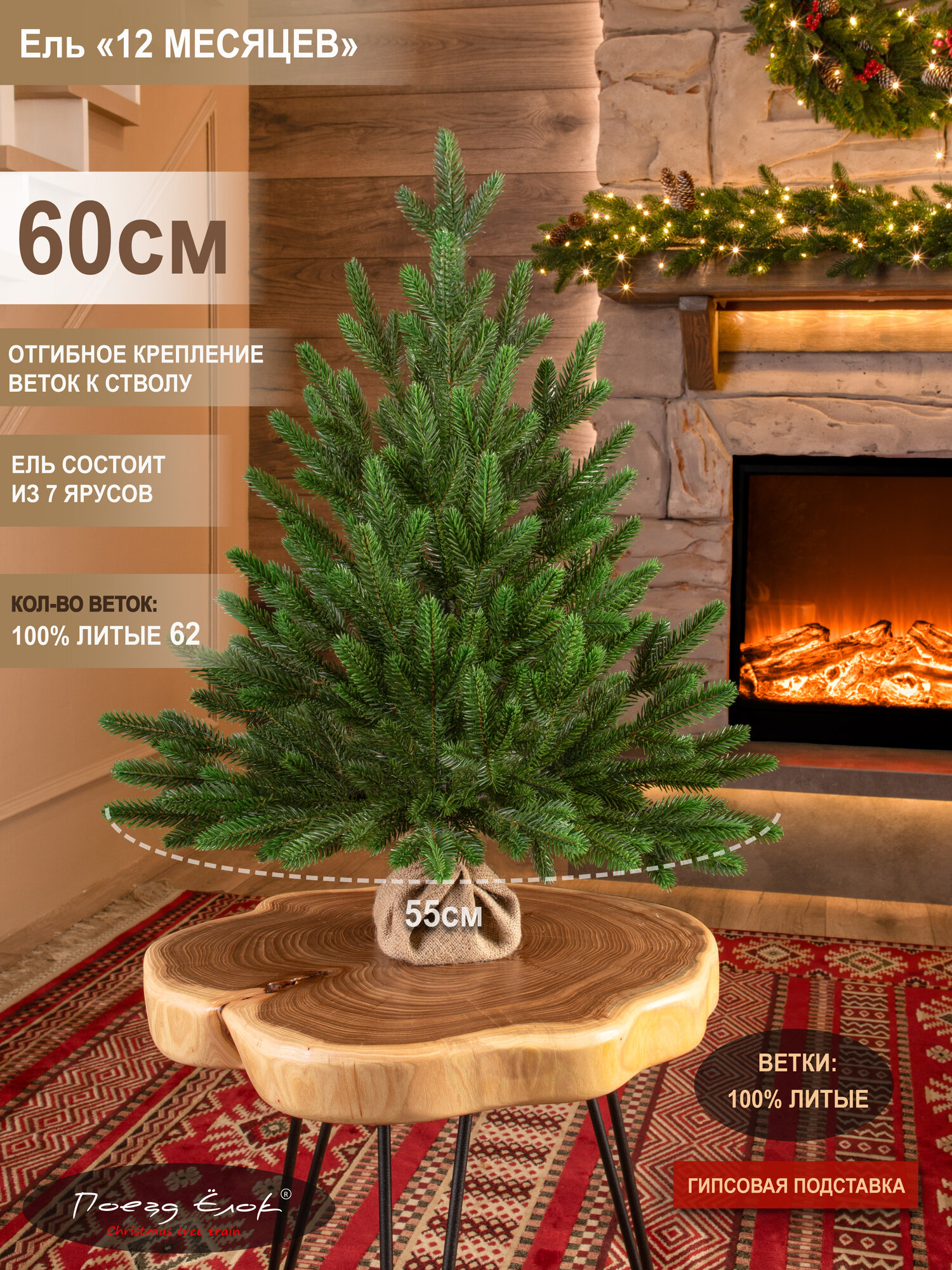 Елка искусственная новогодняя литая маленькая 60 см, ель для помещений, Поезд Ёлок