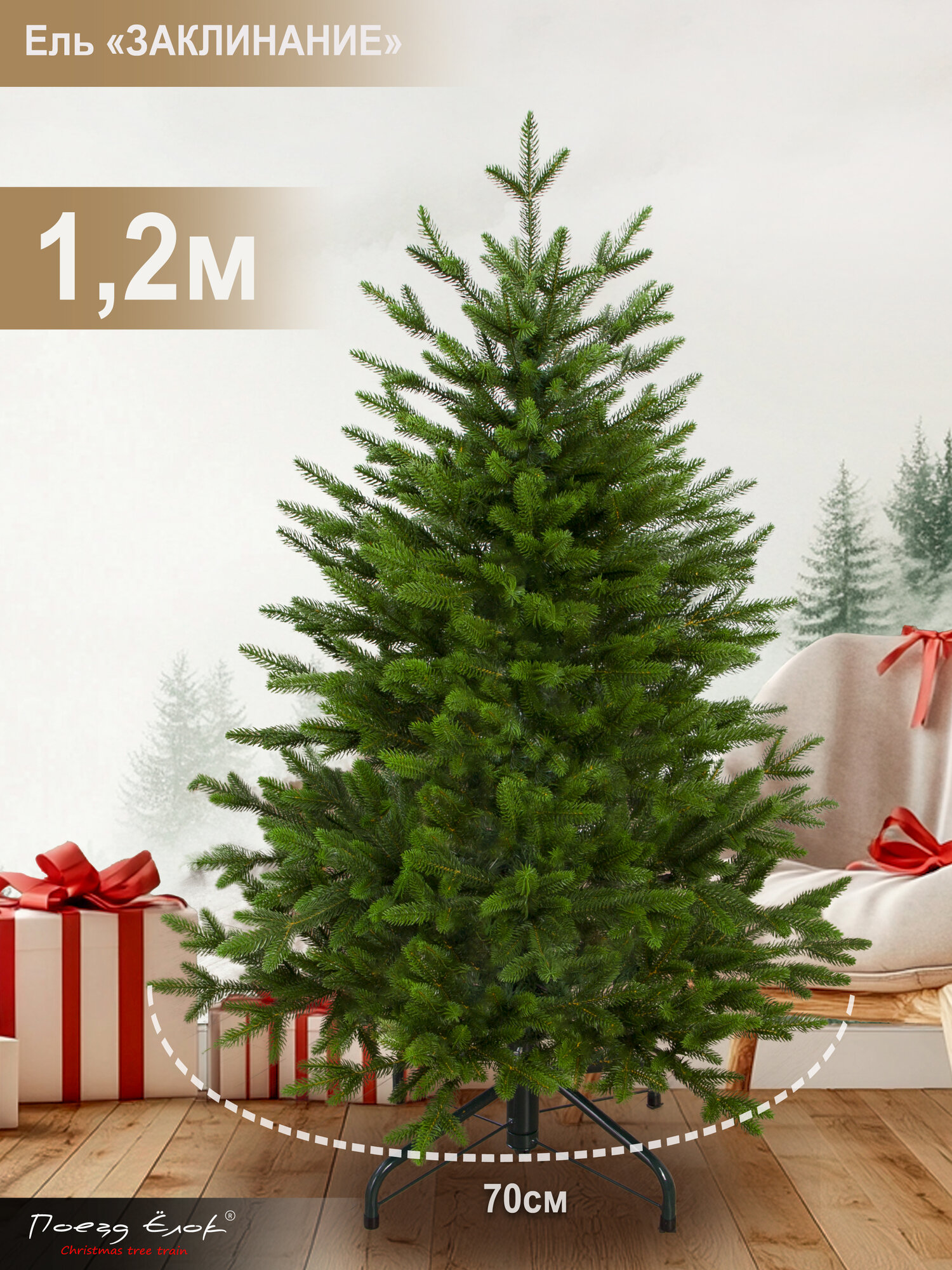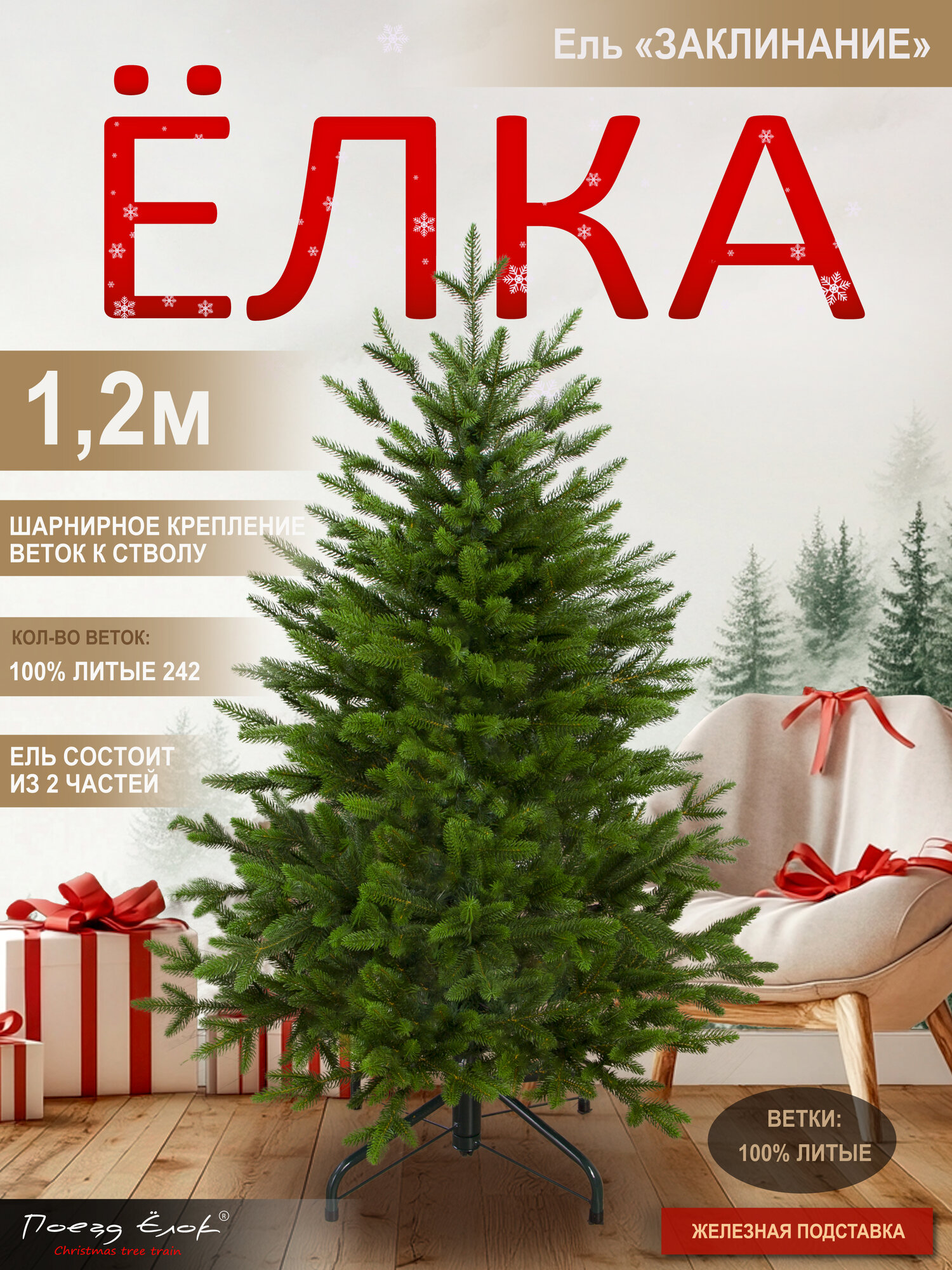 Елка искусственная новогодняя литая небольшая 120 см, Поезд Елок
