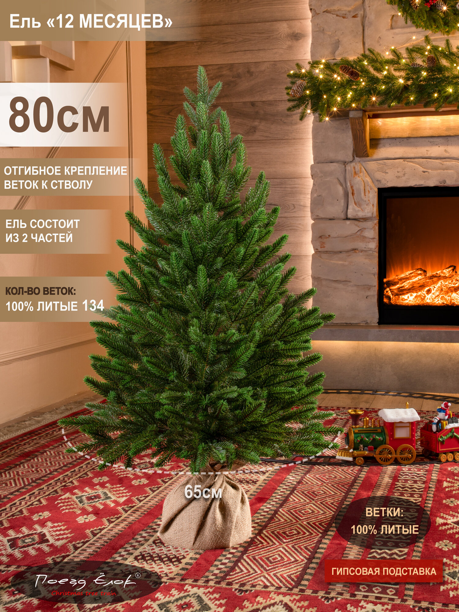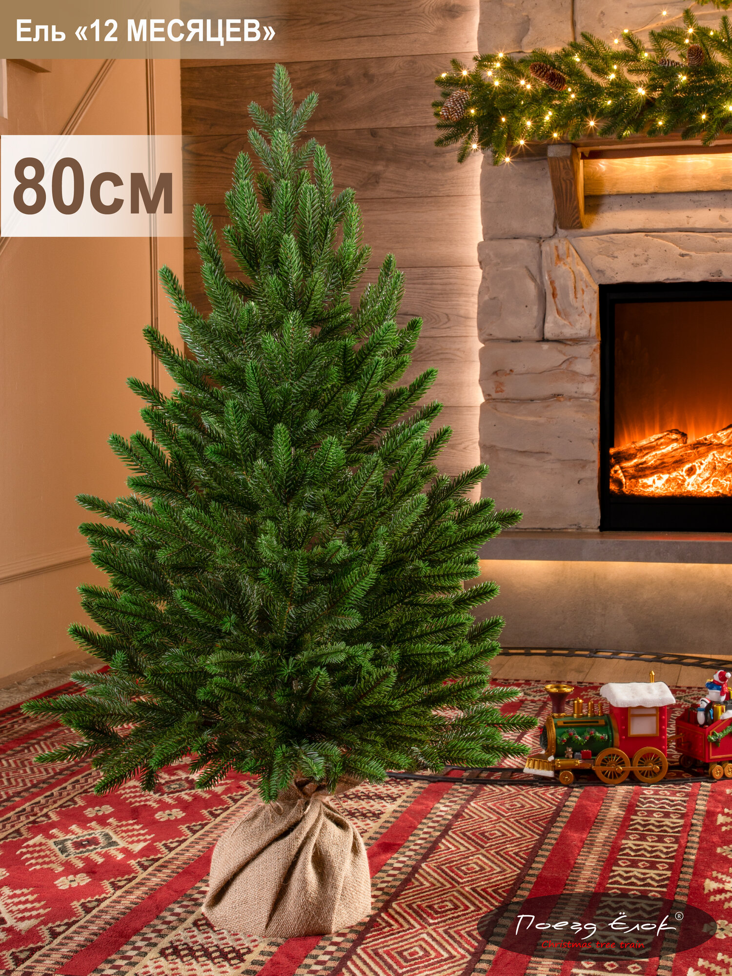 Елка искусственная новогодняя литая небольшая 80 см, ель для помещений, Поезд Ёлок