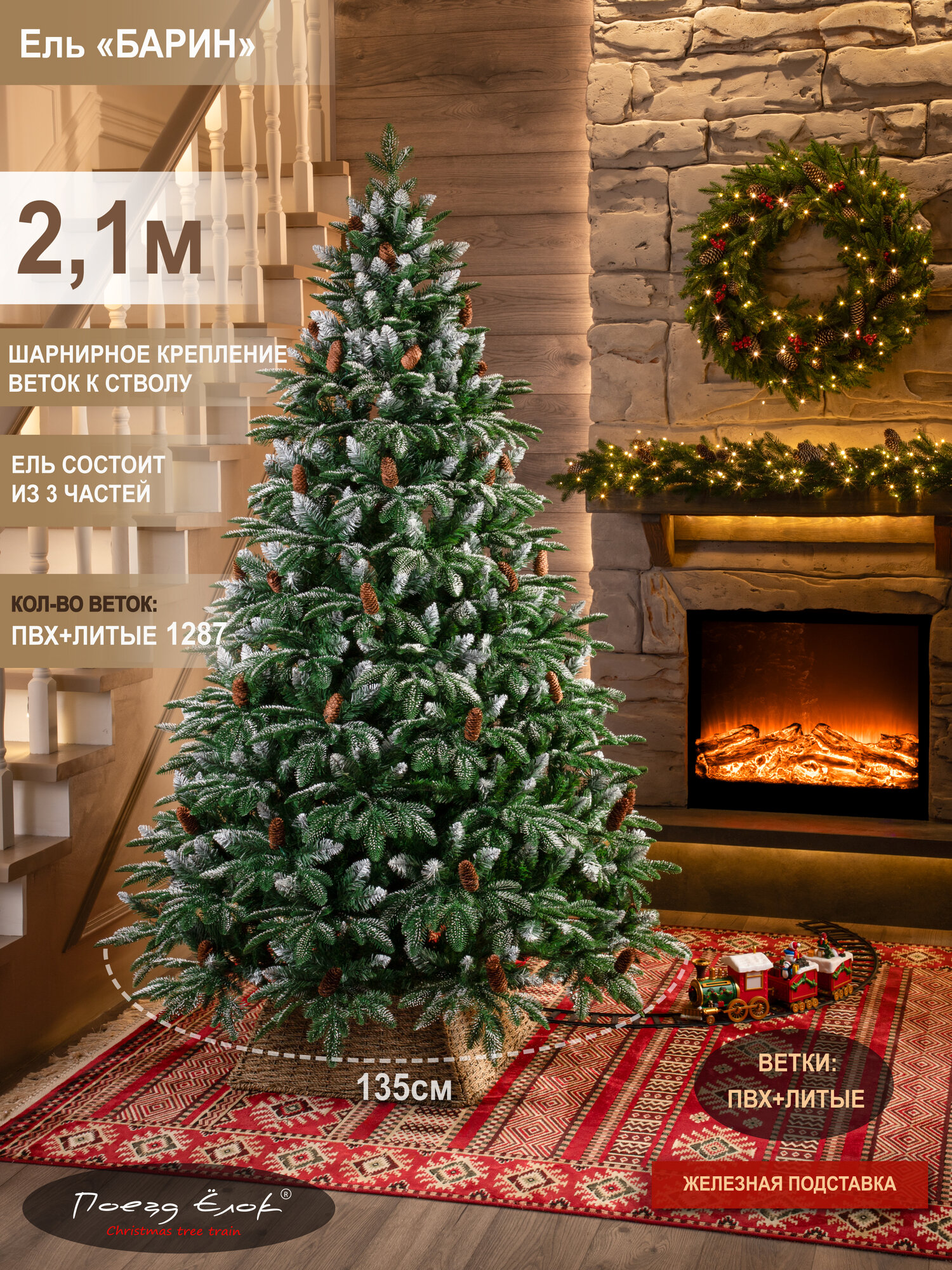 Новогодняя искусственная елка с шишками 210 см (высота с учётом подставки) из серии «Барин»- идеальное решение для создания праздничной атмосферы в вашем доме! Напольная ёлка имеет плотную и густую ветвистую форму. Она прослужит много лет, не выцветая и не осыпаясь. Концы веточек белые, как будто слегка присыпаны снегом. Для украшения использованы шишки. Материал елки: литые ветки (иголки) + пленка ПВХ (основание веток и ствол). Высота от пола до нижнего яруса 23 см. Крепление веток: отгибное крепление веток к стволу. Чтобы собрать нашу искусственную елку, достаточно соединить 3 части дерева между собой, и ветки сами займут горизонтальное положение. Подставка: железная. Упаковка: плотная коробка, в которой можно хранить ель 2. 10 м между праздниками. Эта элегантная ель высотой 2,10 м легко собирается и разбирается. Иголочки на елке на ощупь похожи упругую резину. Ветки после распаковки сразу же восстанавливают форму. Она безопасна в эксплуатации даже для детей и детского праздника, не мнется, не имеет запаха и не вызывает аллергии. Благодаря использованию новейших 3D технологий ветки у елочки пушистые и реалистичные! Такая красивая елка идеально подходит для семейного праздника на Новый год и Рождество для квартиры, дачи или офиса. Используйте ее для украшения фотостудии, лофта, квартиры, комнаты, дома и офиса. В ассортименте Поезд Ёлок вы найдете много разных вариантов гирлянд и других елок. Чтобы увидеть весь наш ассортимент, нажмите на логотип Поезд Ёлок и перейдите в наш магазин.
