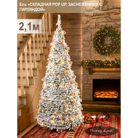 Купить Елка искусственная новогодняя складная ПВХ заснеженная с гирляндой 210 см, ель-лентяйка Pop-Up на Рождество высокая для помещений, Поезд Ёлок с доставкой по всей России.