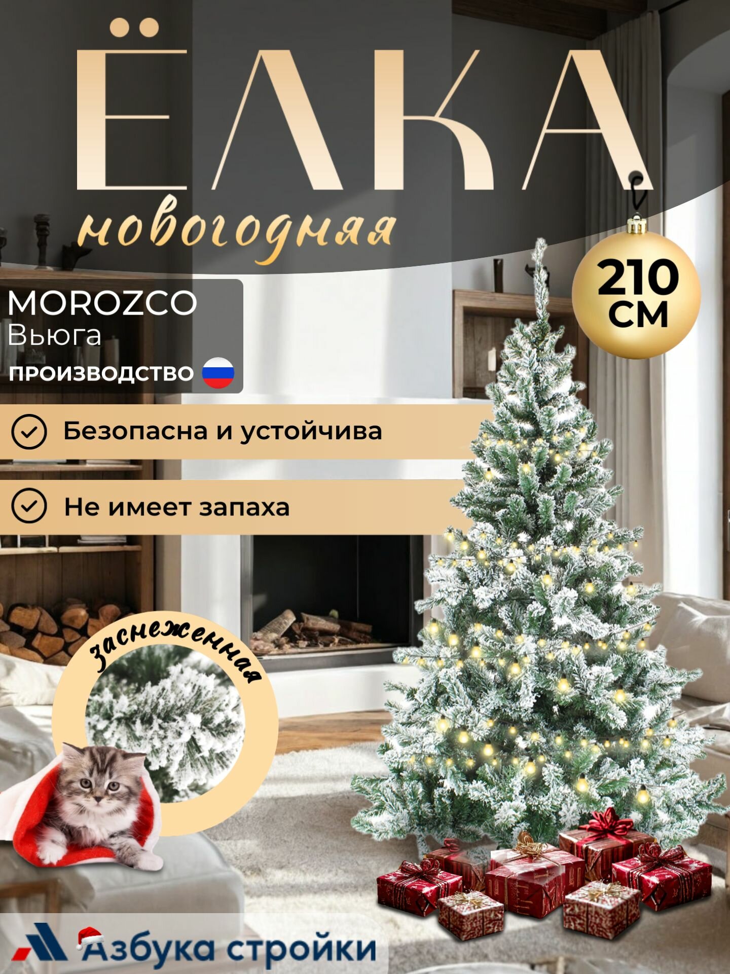 Купить Елка искусственная новогодняя заснеженная 210 см Morozco Вьюга, 100% ПВХ, зеленая с доставкой по всей России.