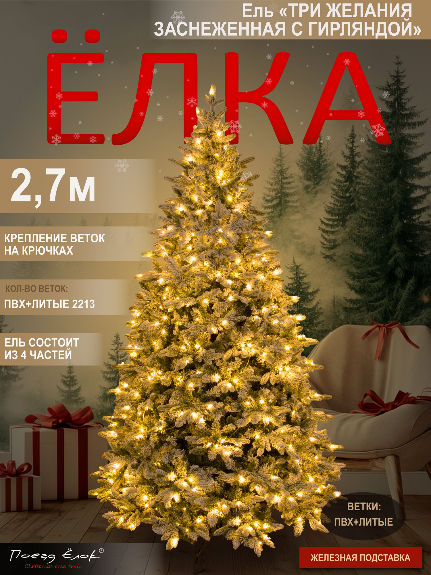 Купить Елка искусственная новогодняя заснеженная с гирляндой литая+ПВХ 270 см, Поезд Ёлок с доставкой по всей России. Елка искусственная новогодняя заснеженная с гирляндой литая+ПВХ 270 см, Поезд Ёлок: сравнение цен, характеристики, фото, актуальное наличие и цены.