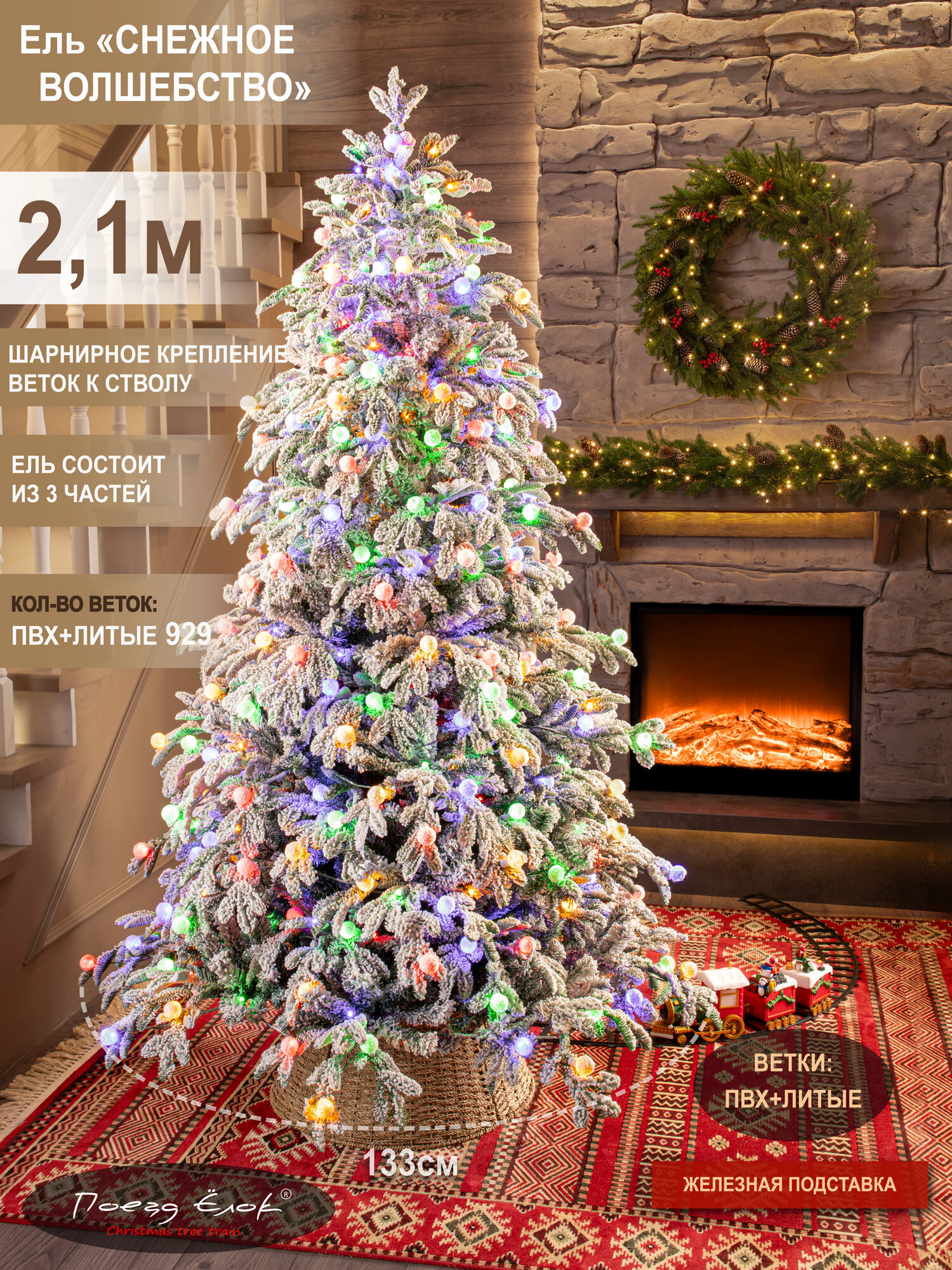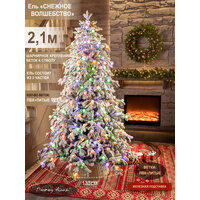 Погрузитесь в волшебную атмосферу зимнего волшебства с нашей заснеженной искусственной елкой с гирляндой 210 см (высота с учётом подставки) из серии «Снежное волшебство»! Для украшения узкой елки использовано напыление в виде искусственного снега, что придает новогодней заснеженной красавице еще больше нарядности. Снег абсолютно безопасен, не пахнет. Возможно небольшое осыпание напыления искусственного снега, что является нормой. Ель уже украшена гирлнядой, а длины шнура всегда хватит, чтобы подключить к розетке. Напольная ёлка имеет плотную и густую ветвистую форму. Она прослужит много лет, не выцветая и не осыпаясь. Материал елки: литые ветки (иголки) + пленка ПВХ (основание веток и ствол)+леска. Высота от пола до нижнего яруса 22 см. Крепление веток: шарнирное к стволу. Чтобы собрать нашу искусственную елку, достаточно соединить 3 части дерева между собой, и ветки сами займут горизонтальное положение. Подставка: железная. Упаковка: плотная коробка, в которой можно хранить ель 2. 10 м между праздниками. Эта элегантная ель высотой 2,10 м легко собирается и разбирается. Елка имеет компактуню форму, узкий силуэт, что позволит разместить ее в любой комнате. Иголочки на елке на ощупь похожи упругую резину. Ветки после распаковки сразу же восстанавливают форму. Она безопасна в эксплуатации даже для детей и детского праздника, не мнется, не имеет запаха и не вызывает аллергии. Благодаря использованию новейших 3D технологий ветки у елочки пушистые и реалистичные! Такая красивая елка идеально подходит для семейного праздника на Новый год и Рождество для квартиры, дачи или офиса. Используйте ее для украшения фотостудии, лофта, квартиры, комнаты, дома и офиса. В ассортименте Поезд Ёлок вы найдете много разных вариантов гирлянд и других елок. Чтобы увидеть весь наш ассортимент, нажмите на логотип Поезд Ёлок и перейдите в наш магазин.