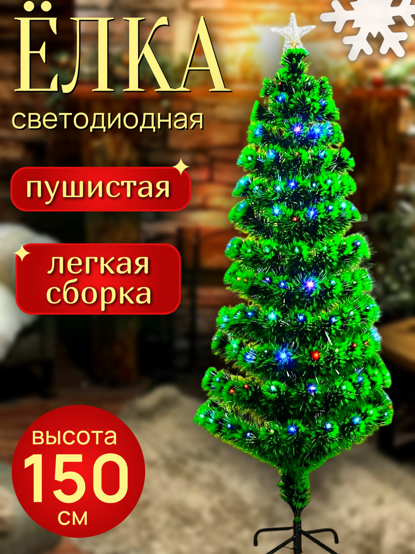 Купить Елка искусственная светодиодная, Сосна новогодняя, пышная елочка, сосна искуственная, Елка с гирляндой встроенной 150 см с доставкой по всей России.