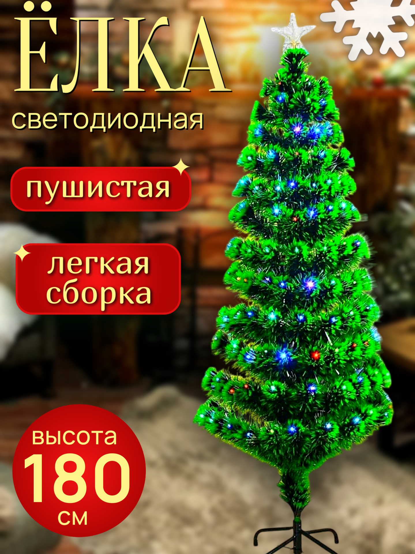 Купить Елка искусственная светодиодная, Сосна новогодняя, пышная елочка, сосна искуственная, Елка с гирляндой встроенной 180 см с доставкой по всей России.