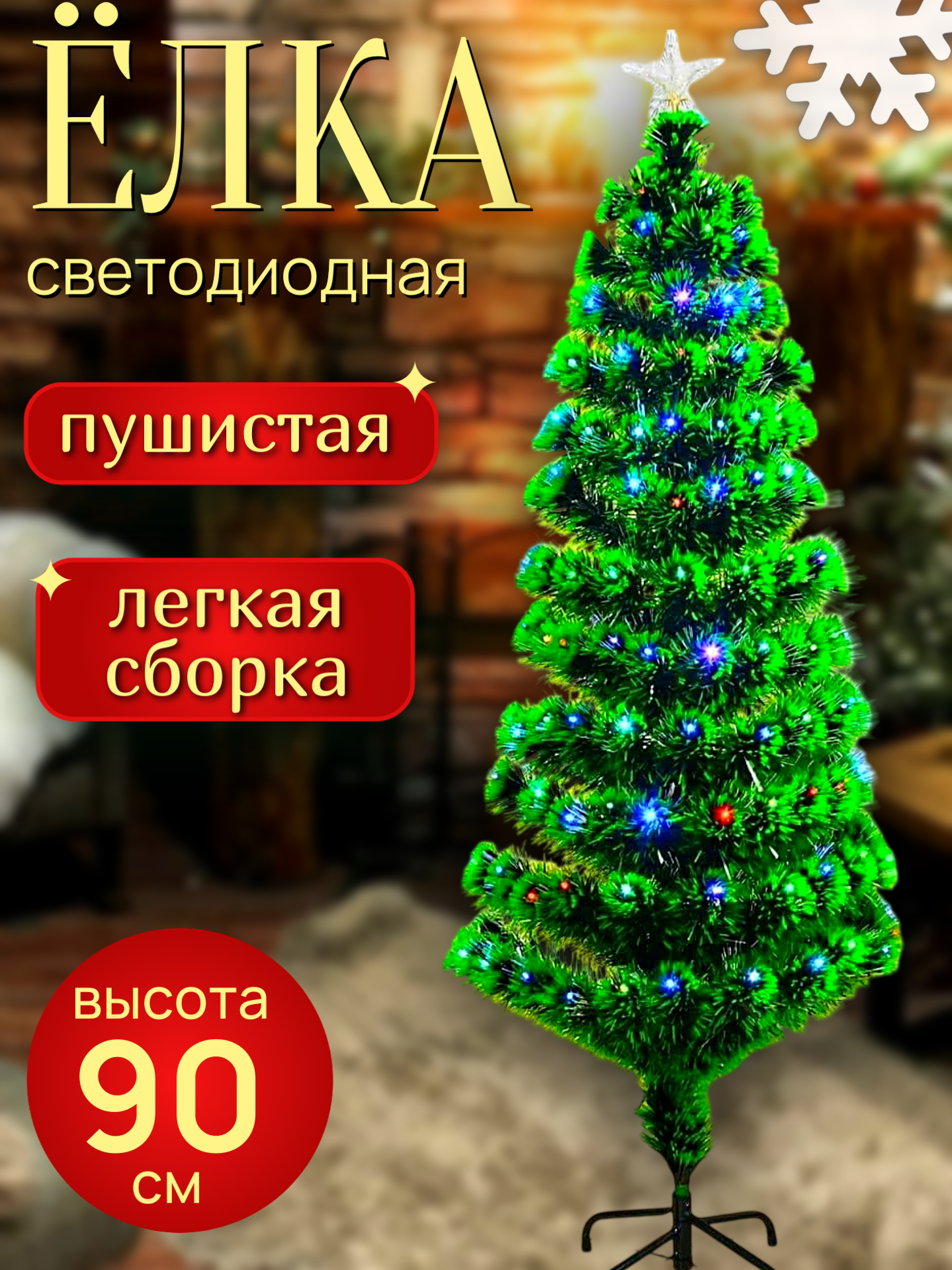 Купить Елка искусственная светодиодная, Сосна новогодняя, пышная елочка, сосна искуственная, Елка с гирляндой встроенной 90 см с доставкой по всей России.
