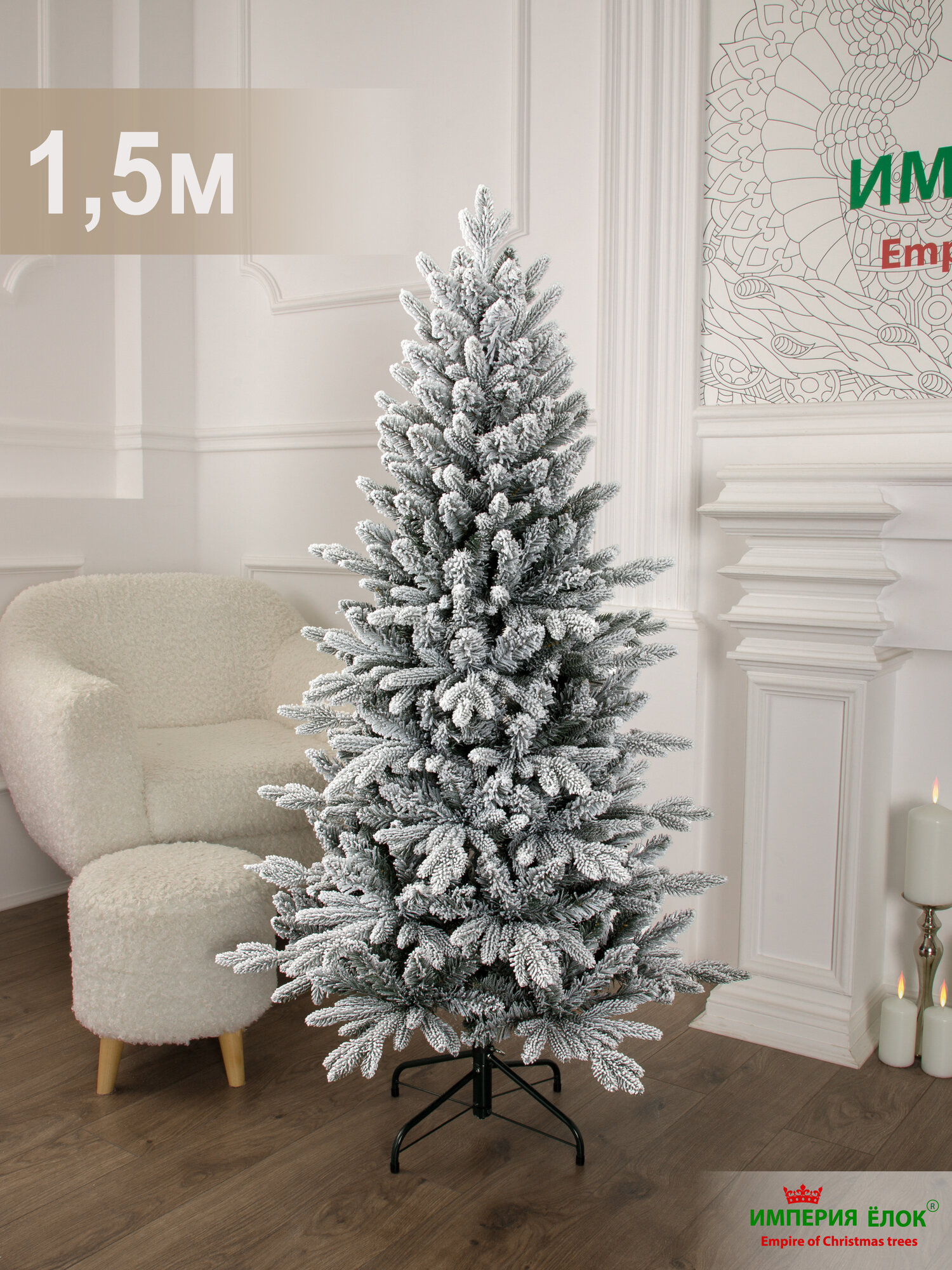 Купить Елка искусственная заснеженная узкая литая+ПВХ 150 см, на Рождество для дома и офиса, Империя Ёлок с доставкой по всей России.