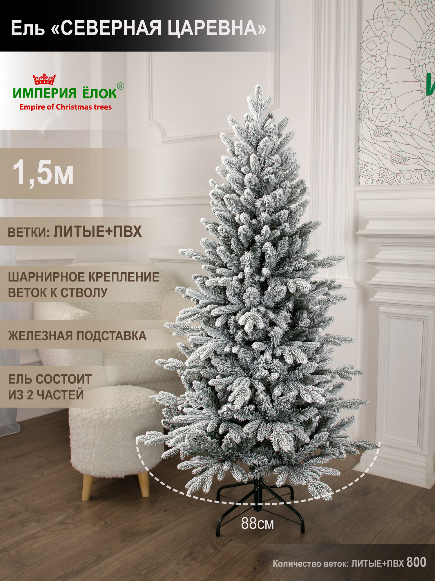 Елка искусственная заснеженная узкая литая+ПВХ 150 см, на Рождество для дома и офиса, Империя Ёлок: сравнение цен, характеристики, фото, актуальное наличие и цены.