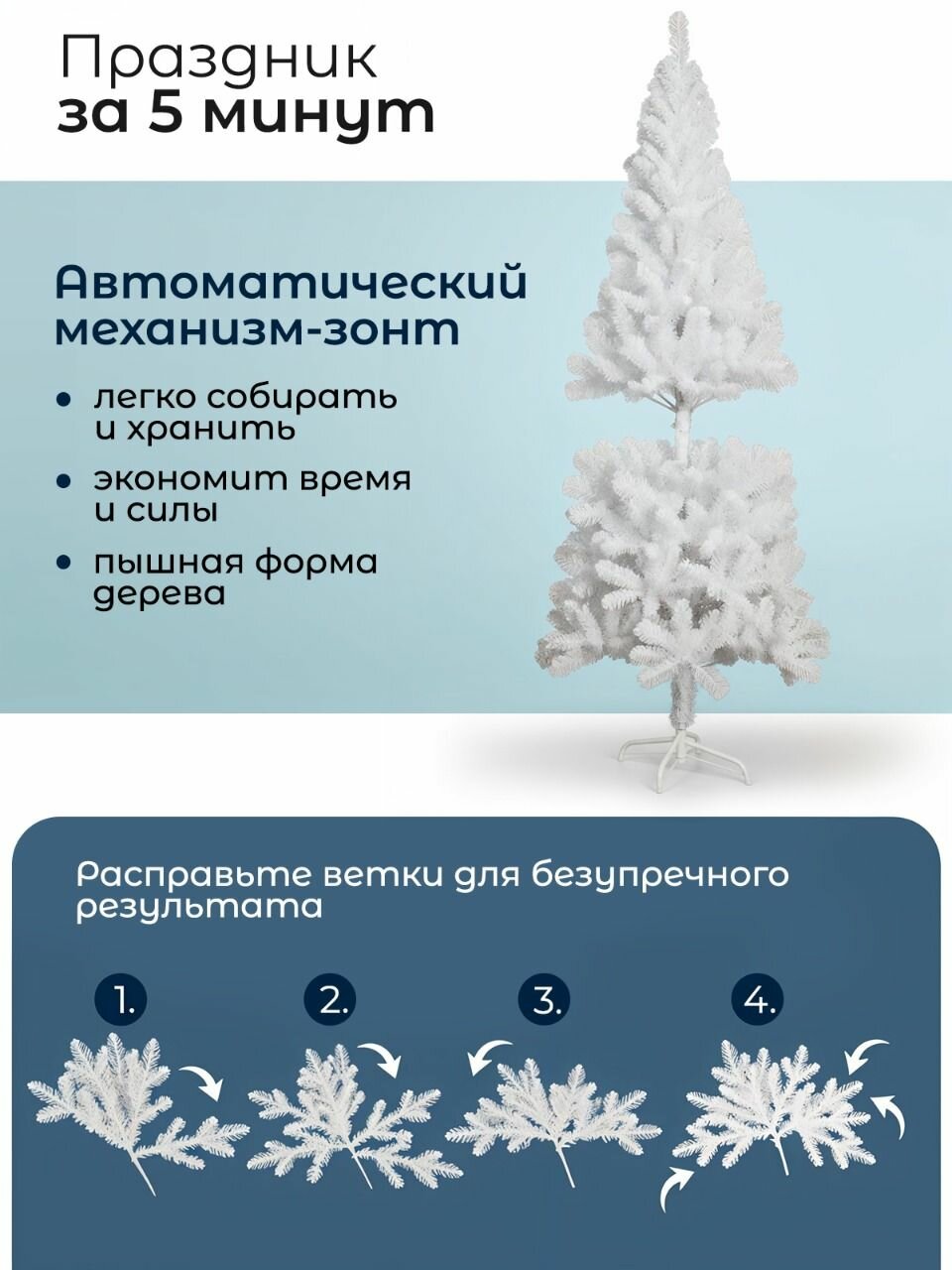 Елка новогодняя искусственная 150 см, 200 веток, Magic Craft для праздника на Новый Год и Рождество ель сосна пушистая с железной основой подставкой напольная из ПВХ пластика и металла, высокая белая
