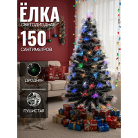 Купить Елка светодиодная 150 см С кисточками искусственная новогодняя с подсветкой, зеленый/белый с доставкой по всей России.