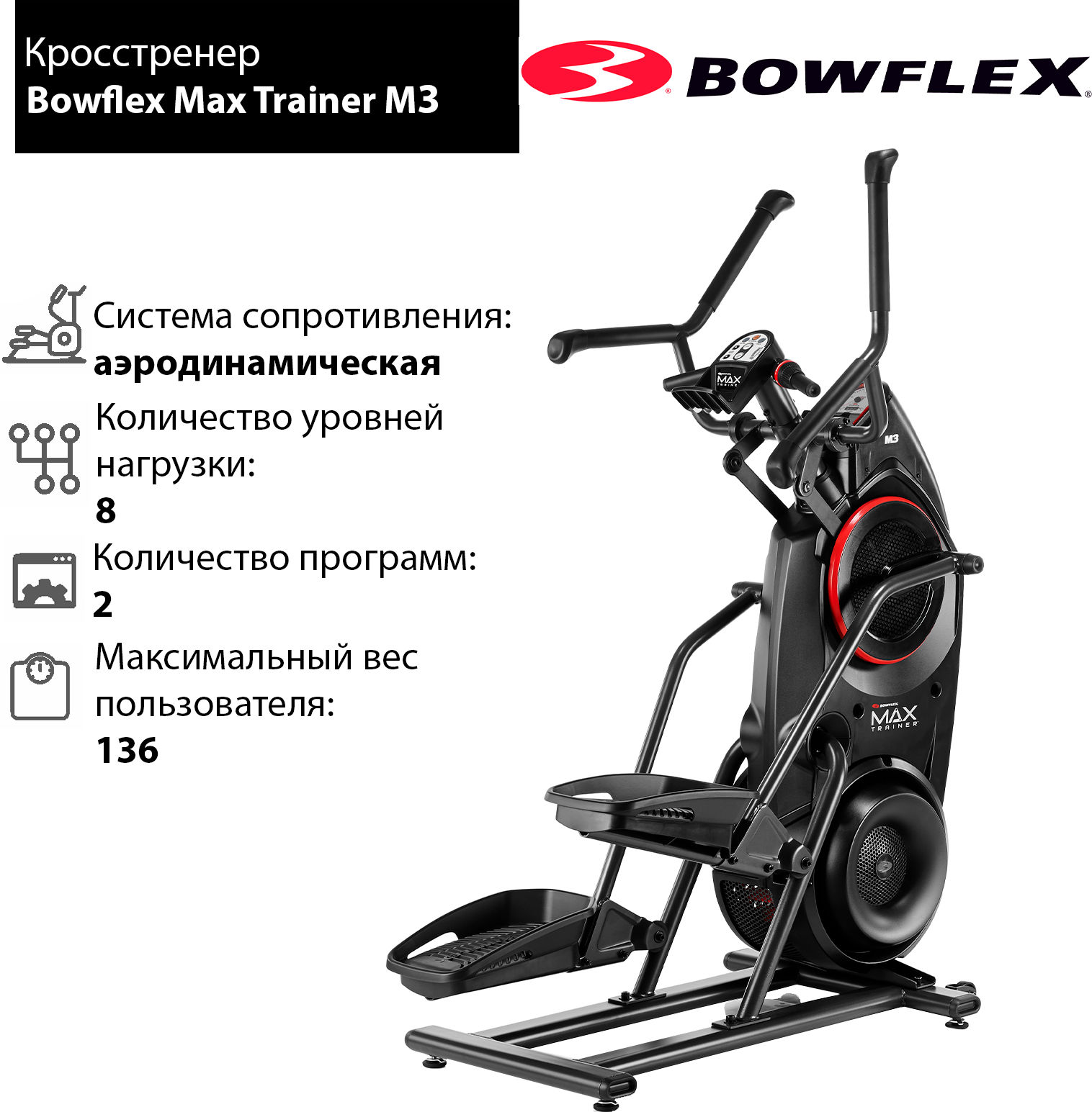 Сжигает больше Каждую минуту сжигается в 2.5 раза больше калорий. Проведенное независимое сравнение MaxTrainer с беговыми дорожками, эллиптическими тренажерами и степперами со всей очевидностью доказало его потрясающую результативность. Работая в одинаковом темпе и с одинаковой интенсивностью, пользователи сжигают на MaxTrainer в 2.5 больше калорий за каждую минуту тренировки. Так испытуемые сжигали минимум 600 калорий за полчаса. Меньше времени Больше результата за меньшее время. По данным исследований, нехватка времени становится основным препятствием для оптимального режима тренировок. MaxTrainer идеально подходит для тех, кто стремится к успеху, но серьезно ограничен во времени. За 14-минутный цикл вы не только получите полноценную кардио нагрузку, необходимую для здоровья сердца и легких но и улучшите показатели выносливости и тренированности. При этом калории сжигаются быстрее, чем это возможно было когда-либо прежде. Высокая мотивация Следите за результатами в реальном времени. Уникальный дисплей МахТrainer обеспечивает полный контроль над сжигаемыми калориями в режиме реального времени. Вы видите целевые показатели и уровень активности в ходе всей тренировочной программы. Эта информация дает потрясающую мотивацию. Каждая тренировка становится новым вызовом самому себе, шансом взять новую вершину и испытать гордость за достигнутый результат. Приложение Max Trainer App (Android / iOS), синхронизируются с Apple Health и позволяет отслеживать данные каждой тренировки в максимально удобном формате. Тренировка всего тела Комплексная тренировка с большей результативностью. Результаты тренировок на MaxTrainer значительно превосходят результаты, достигаемые на классических эллиптических тренажерах. Max Trainer доказал более высокую эффективность как в тренировке мышц ног и туловища, так и в тренировке верхней части тела, которые оказались на 80% выше! Калории сжигаются гораздо быстрее, чем вы могли себе представить. Максимальный комфорт и безопасность Умная тренировка. Max Trainer позволяет добиваться максимального жиросжигания, избегая нежелательных нагрузок на тело и суставы. Даже на средней скорости, эффект тренировки будет на 200% выше, чем на аналогичных тренажерах . Эта тренировка умнее, а не сложнее. Постэффект сжигания калорий Сжигание калорий продолжается и дальше. Вы сжигаете калории не только во время тренировки, но и в течение многих последующих часов. Достижения спортивной науки, реализованные в MaxTrainer позволяют добиваться потрясающих результатов! Всего 14 минут короткой интервальной тренировки, за которой следует более длительный период отдыха и… ваше тело продолжает разгонять обмен веществ, сжигая и сжигая новые калории. «вовлекает в процесс верхнюю часть тела больше чем эллиптический тренажер» — SGI Weekly Intelligence. Результат гарантирован Фитнес - это наша страсть. За 25 лет Bowflex стал прочно ассоциироваться с реальными результатами, достигаемыми реальными людьми. Max Trainer уверенно подтверждает эту репутацию. Первой пробной группе удалось потерять за 10 недель тренировок 163 кг! Мы уверены, результат превзойдет ваши ожидания! Надежность Создан для действия. Bowflex не создает хрупких гаджетов, которые быстро ломаются. Как и вы, мы очень серьезно относимся к физической форме и поэтому создаем надежные и совершенные тренажеры. Компактность идеально впишется