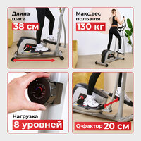| Особенности конструкции | компенсаторы неровности пола, противоскользящее покрытие, регулировка длины шага, рычаги для рук, транспортировочные ролики/колеса |