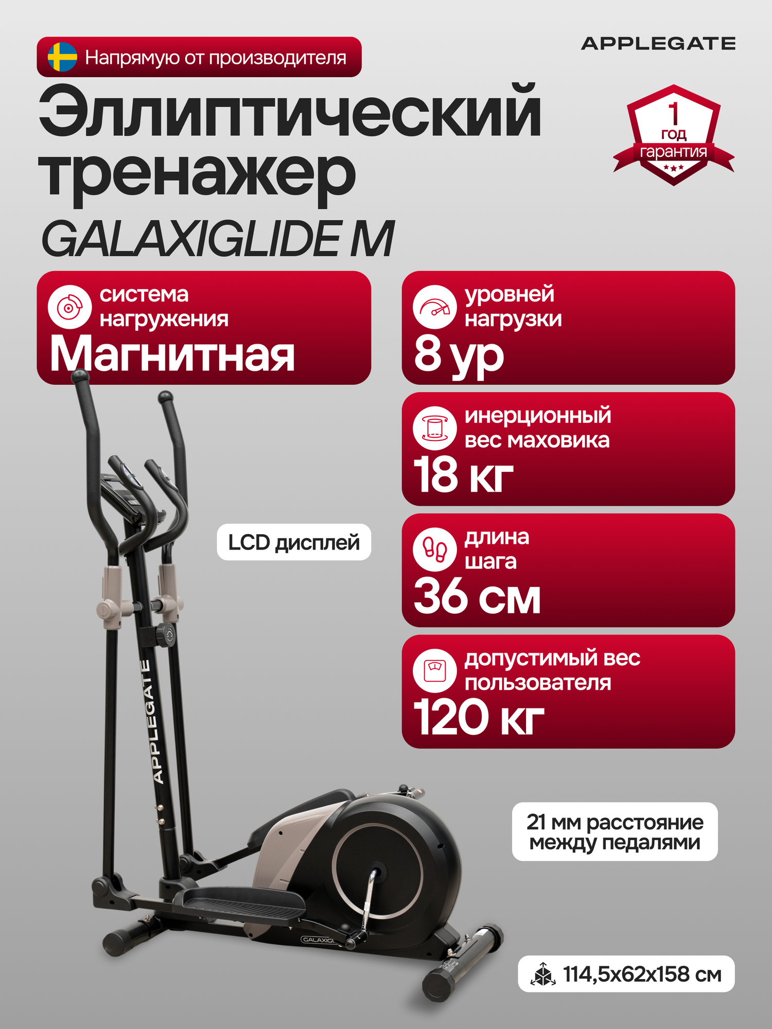 Эллиптический тренажер для дома APPLEGATE GALAXYGLIDE M, эллипсоидный тренажер: сравнение цен, характеристики, фото, актуальное наличие и цены.