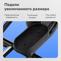 Ваш комфорт является нашим приоритетом. Удобные изогнутые подвижные поручни с мягкой оплеткой и неподвижные поручни с датчиками пульса обеспечивают комфортное и безопасное сцепление во время тренировки. Дополнительный комфорт обеспечивается антискользящими, увеличенного размера, педалями с расстоянием между ними в 7 см, что позволяет комфортно выполнять движения.