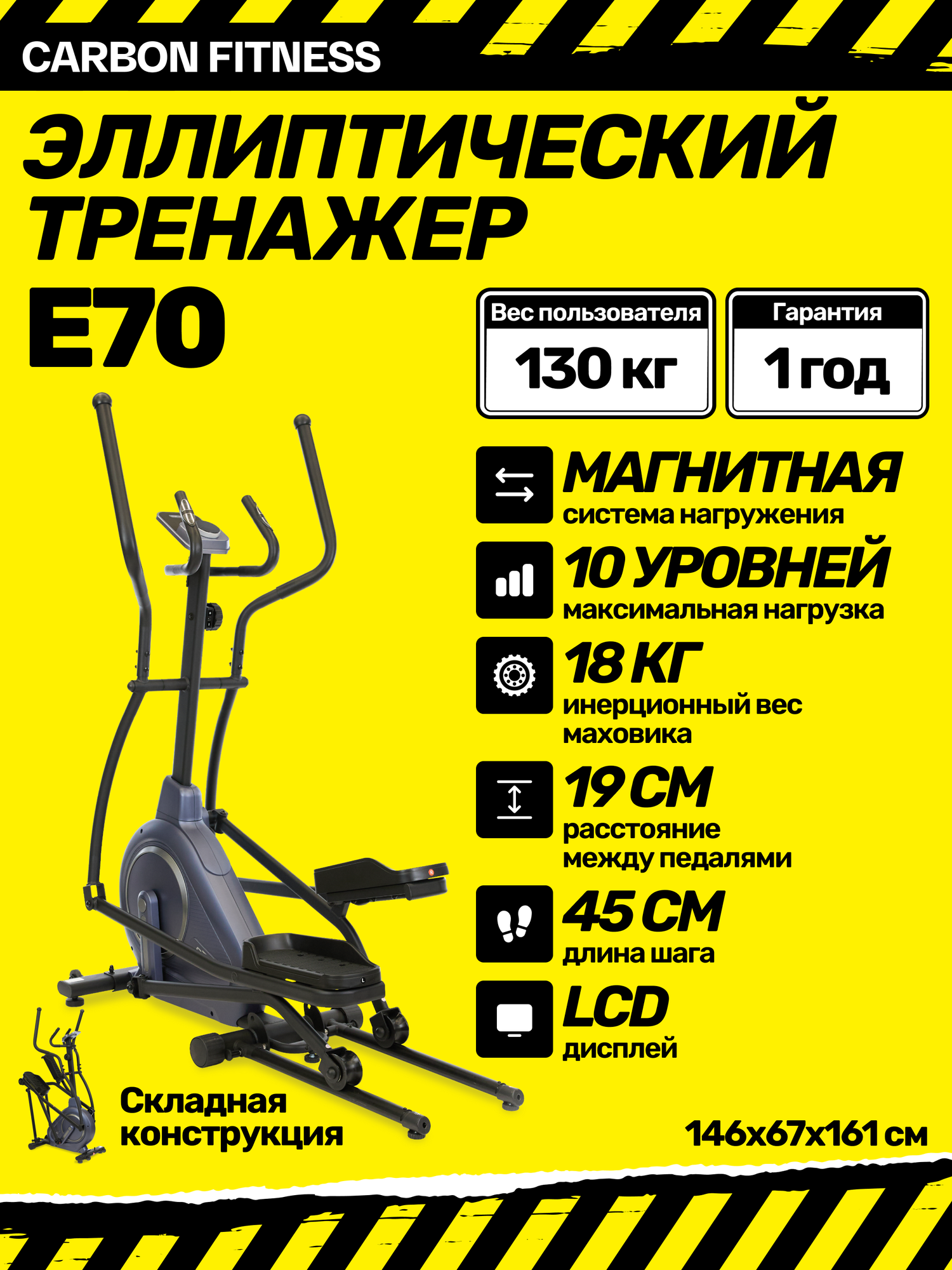 Эллиптический тренажёр CARBON FITNESS E70, магнитный, чёрный: сравнение цен, характеристики, фото, актуальное наличие и цены.