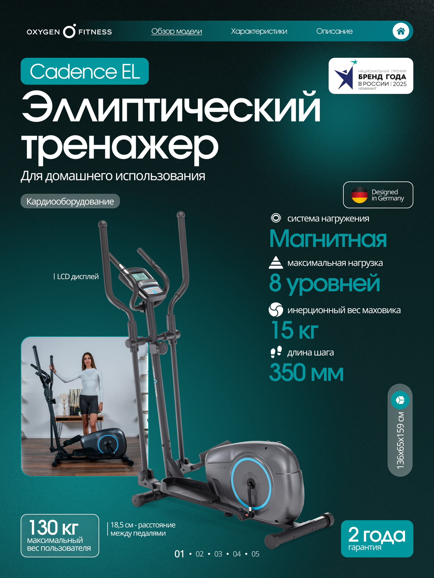 Ключевые преимущества OXYGEN FITNESS CADENCE EL: