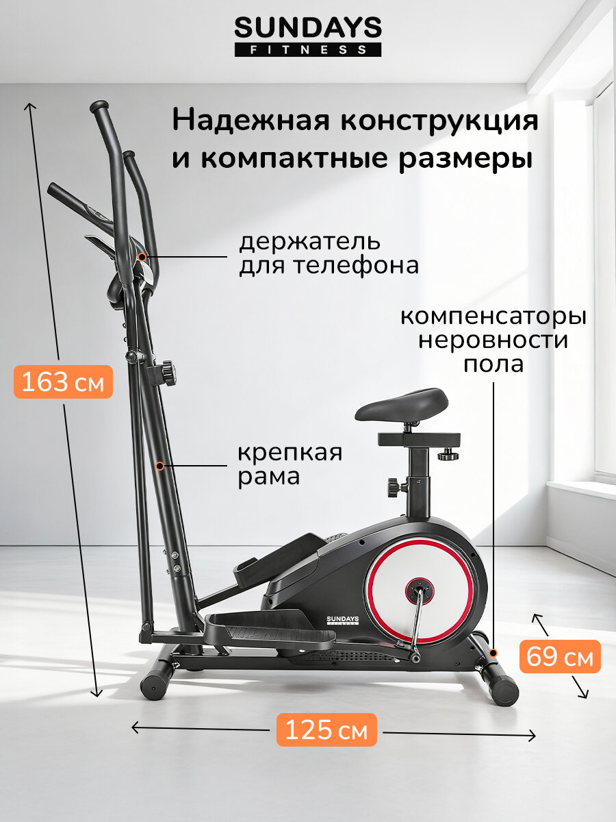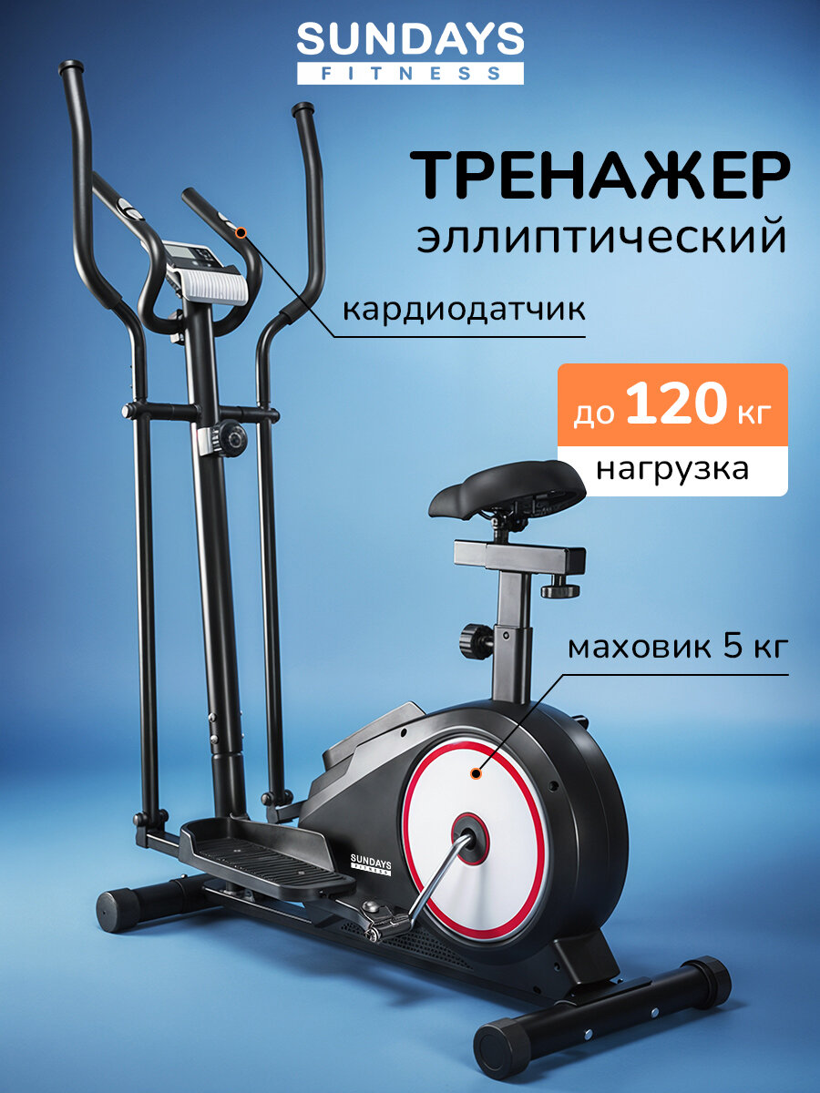 Купить Эллиптический тренажер для дома Sundays Fitness до 120 кг, кардиотренажер для похудения K8508HA, 8 уровней, 4 программы с доставкой по всей России.