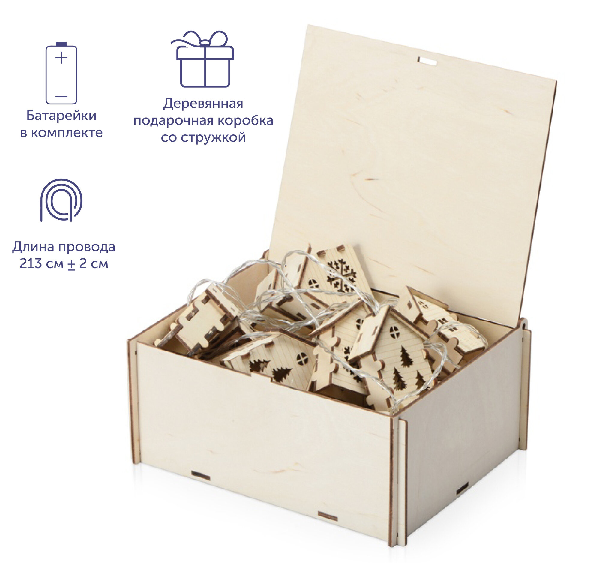 Купить Елочная гирлянда с лампочками «Зимняя сказка» в деревянной подарочной коробке с доставкой по всей России.