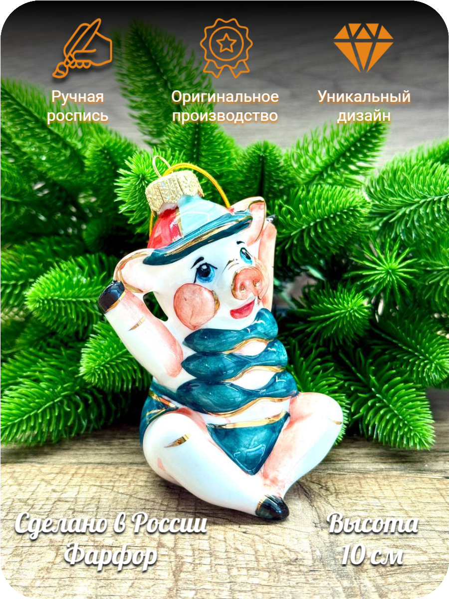 Елочная игрушка Лефортовский Фарфор «Свинка в купальнике. Ну погоди», ручная роспись, фарфор: сравнение цен, характеристики, фото, актуальное наличие и цены.
