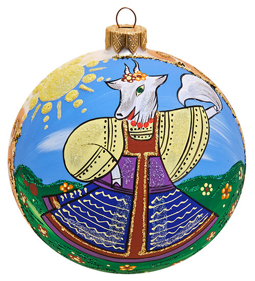 Елочное украшение Шар Козочка в сарафане 100 мм НФШ-1481/1 113-802735